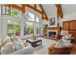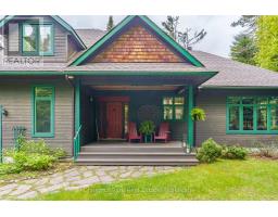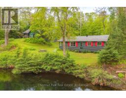 Where Stories Begin and Memories Stay: A Family Riverfront Retreat on the Black River Own it solo or share it with family or friends the magic of Muskoka is best when experienced together.Nestled along 405 feet of private shoreline with breathtaking westerly sunsets, just outside Bracebridge, this exceptional property offers not one, but two distinct dwellings, making it the perfect setting for multi-generational living, shared ownership, or a timeless family getaway.The main year-round residence, built in 2005, welcomes you with a warm timber framed accents design and soaring windows that flood the space with natural light and frame the beauty of the river beyond. Its open-concept layout is both bright and inviting, with a main floor primary suite, three additional bedrooms upstairs, and two dens below. A stunning stone fireplace anchors the living space, while a Muskoka room extends your living area into the trees perfect for relaxing to the sounds of the forest or gathering for evening games and laughter. The lower level also features a large games room, a formal living room, and walkout access that keeps you effortlessly connected to the outdoors. Steps away, the 1974 log cabin stands as a testament to decades of family joy. Lovingly preserved, it offers three generous bedrooms, a 3-piece bath, its own Muskoka room, and a storybook setting right at the rivers edge. Here, children catch frogs by day and roast marshmallows by the campfire under the stars by night. The walls echo with laughter, and the beams hold generations of memories. With no other structures in sight, this is your own hidden paradise where peace, privacy, and natural beauty converge. Whether you're seeking a peaceful year-round home, a multi-generational compound, or an investment in connection and nature, this property delivers the lifestyle only Muskoka can provide. Don't miss your chance to make Muskoka HOME! (id:63952)