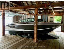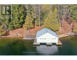 A rare offering on Lake of Bays: two beautifully renovated 4-season cottages with 5 bedrooms and 4 bathrooms between them. The cottages come completely furnished. A 2-slip boathouse includes 2 top notch boats. Covered walkways elegantly connect the main and guest cottages. An expansive deck includes an outdoor Muskoka room where you can dine or hang out while protected from the elements. The main cottage features a furnished, bright, open-concept living and dining area with sweeping views. A remarkable 100-year-old stone fireplace was crafted by the mason who built the stoneworks for the original Bigwin resort. The sunroom can be a kids' playroom or a peaceful retreat. The spacious, modern kitchen comes equipped for cooking and entertaining, with a big granite island, generous storage, and quality appliances. Upstairs, the spacious principal bedroom has a wall of windows with stunning lake views, ample storage, and an ensuite with a whirlpool bath. Two more bedrooms provide comfortable accommodation, including one in a private suite with 3-piece bathroom. The guest cottage offers privacy and enjoyment. It has two bedrooms and a 4-piece bathroom upstairs. Its welcoming main floor has a fireplace, lounge area with satellite TV, and fitness space with treadmill, weights, bench et cetera. The 220-foot shoreline features a 1,100 sq ft boathouse with two slips, electric lifts and a change room. The boathouse is flanked by two generous docks for swimming, fun, and relaxing. Included are a professionally maintained Regal 2100 bow rider boat; a meticulously restored classic wooden runabout; and a collection of lakeside essentials from Muskoka chairs to kayaks. In addition, the multi-acre lot is a magical, private fragment of the Canadian Shield, well suited for walking, snowshoeing, mushroom hunting and other adventures. Properties of this calibre rarely come to market on Lake of Bays. Move in and enjoy the lake from day one. ** This is a linked property.** (id:63952)