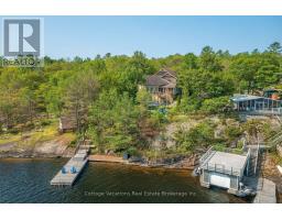 A rare opportunity to own a truly exceptional retreat+investment on the coveted south shore of Lake Muskoka. Welcome to Muskoka Blue, an extraordinary offering that combines modern sophistication with the timeless beauty of Muskoka's natural landscape. A strong history as a very successful rental property with proven revenue allows the next owner to seamlessly start making a return on their investment from day one. Ideally situated less than two hours from the GTA, this stunning cottage delivers both accessibility and a world away feeling for an unrivaled sanctuary for those seeking the finest in waterfront living. Showcasing over 2,700 square feet of thoughtfully designed living space, Muskoka Blue features 5 bedrooms and 3 bathrooms, perfectly appointed for relaxed, elegant entertaining. Soaring 21-foot vaulted ceilings and expansive walls of glass frame breathtaking, long lake vistas, creating seamless indoor-outdoor connections. The great room, anchored by a grand stone fireplace, is both impressive and inviting, while the screened Muskoka room and extensive decking further extend the living spaces into the natural surroundings.The chefs kitchen is the heart of the home, offering a large centre island, Quartz countertops, and premium stainless steel appliances the ideal setting for gathering with family and guests. Outdoors, a private cantilevered dock invites endless exploration across Muskoka's famed Big Three Lakes Muskoka, Rosseau, and Joseph with exceptional opportunities for boating, swimming, and water sports. Designed for memorable entertaining, the generous outdoor granite fire pit area, al fresco dining spaces, and thoughtful landscaping ensure privacy and tranquility. Offered fully furnished, Muskoka Blue is a true turnkey property, offering immediate enjoyment of all Muskoka has to offer. Rental income history available upon request. (id:63952)