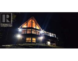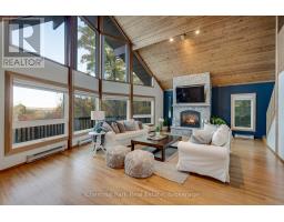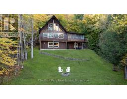Your Next Muskoka Adventure Awaits Welcome to your dream chalet on coveted Point Ideal Road in Dwight. Nestled on 4.73 private acres, this exceptional 3,000 sq. ft. retreat blends rustic charm with modern comforts, creating the perfect four-season escape.Whether your days are spent swimming in Lake of Bays, skiing at Hidden Valley, or exploring endless snowmobile trails, you will love returning home to the serenity of this forested haven.Step inside to a welcoming foyer with ample space for all your gear. The great room sets the tone with soaring vaulted ceilings and a dramatic floor-to-ceiling stone propane fireplace the heart of true Muskoka living. The bright, open-concept kitchen with built-in appliances flows seamlessly into the dining area and out to a screened-in Muskoka room, ideal for summer dinners under the stars. A BBQ deck offers the perfect spot for casual gatherings overlooking the woods.The main floor features two spacious bedrooms and a full bathroom, ideal for family, guests, or multi-generational living. Upstairs, a private loft-style primary suite offers treetop views and a spa-inspired ensuite with Jacuzzi tub, water closet, and walk-in closet.The walkout lower level redefines basement living with high ceilings, a generous family room, an additional bedroom and bathroom, plus a sauna your personal après-ski or après-sun retreat. A newly installed pellet stove adds cozy, efficient warmth throughout.Enjoy peaceful woodland views, with seasonal glimpses of Lake of Bays, or take a short stroll down the road to swim and fish in its pristine waters. Point Ideal is quiet and perfect for long walks with your furry friends.This is more than a home it is a Muskoka lifestyle.Bonus opportunity: the adjoining 4.92-acre lot is also available for purchase at $239,999 + HST. (id:63952)