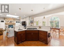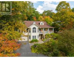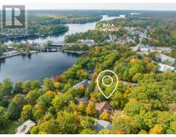 This architecturally striking circa 2005 in-town Bala home offers over 3,800 sq. ft. of finished living space, with handsome curb appeal, views of Lake Muskoka. A premier location on a private 80' x 190' lot featuring mature trees, granite outcroppings, and extensive gardens. The home boasts a NEW (2025) roof, stone pillars, a covered front porch, and an attached 1.5-car garage, all situated on a quiet recessed street steps from all Bala's amenities, including the Historic Bala Walk, Don's Bakery, shops, dining, public docks, boat launches, and more. Inside, the welcoming foyer leads to a spacious open-concept living, dining, and kitchen area, a propane fireplace, 5-burner propane stove, quartz countertops, stainless steel appliances, and ample cabinetry. The main floor also features a primary suite with a walk-in closet, a luxurious 5-pc ensuite, and access to a sun-soaked southwest-facing sunroom. There is a guest bedroom with ensuite privilege to a 3-pc bath, and a generous laundry/mudroom. The fully finished lower level with its own entrance offers a bedroom, office, boardroom, 3-pc bathroom, and garage access, making it ideal for those who work from home or as an in-law suite. Recent upgrades include newer appliances, quartz countertops, a kitchen sink, fresh paint, and a leaf guard system. This solid, well-maintained home combines privacy, comfort, and versatility in the heart of Muskoka, convenient to Port Carling, Gravenhurst, Hardy Park, and multiple lake access points. For those looking for affordable quality living in the heart of Muskoka ... a must see! (id:63952)