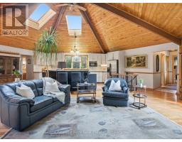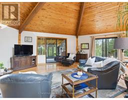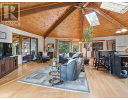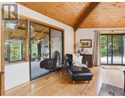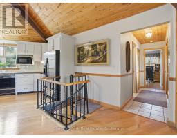 Welcome to your peaceful Muskoka retreat on the beautiful Muskoka River. This year-round home sits on a wooded lot filled with White Pine, Oak, and Maple, offering excellent privacy and a serene natural setting. With approximately 200 feet of river frontage and a creek bordering the east side of the property, there are endless vantage points around the property to take in the incredible views. Enjoy relaxing days in the screened-in gazebo near the water or explore the many natural sitting areas along the shoreline.Inside, the open-concept layout is highlighted by an impressive octagon-shaped ceiling with skylights, filling the main living area with natural light. Hardwood floors run throughout the main level, adding warmth and character. Off the family room, a bright sunroom with river views and a propane stove offers a cozy year-round living space. The primary bedroom features its own sunroom with peaceful garden views, creating a quiet and private retreat.The lower level is fully developed and includes a second propane stove, a spacious workshop, and plenty of storage. Outside, you'll find a 12' x 12' bunkie for guests, tandem garages ideal for trailered boat storage, and a compacted crushed gravel parking area with space for up to six vehicles. A Generac backup generator provides added peace of mind, and year-round access is convenient with a paved municipal road leading right to the property.Whether you're seeking a full-time residence or a four-season getaway, this property blends comfort, thoughtful design, and the natural beauty of Muskoka living. (id:63952)