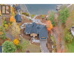 Welcome to 1111 Lakeshore Drive, a brand-new custom-built Linwood post & beam home and bunkie set on 178 feet of south-facing Lake Muskoka shoreline. Enjoy year-round living on a quiet, private bay, just minutes from downtown Gravenhurst and the Muskoka Wharf. This 4-bedroom, 3-bathroom retreat blends timeless Muskoka character with modern comfort. The main floor offers 1,415 sq. ft. of finished space featuring a grand great room with exposed Douglas Fir beams, a granite-faced propane fireplace, and floor-to-ceiling windows framing breathtaking Lake Muskoka views. The chef's kitchen includes quartz countertops, shaker cabinetry, and a walkout to a 12' 16' covered porch overlooking the water. A lower level with exceptional lake views provides a bright walkout family area with space for friends & family, while the main-floor primary suite opens directly to the deck. Additional features include a 2-car insulated attached garage with heated floors, main-floor laundry, hardwood flooring, and heated floors in the basement and principal bathroom & shower. The exterior is maintenance-free, beautifully landscaped with granite and mulch, complete with a fire pit and 12' 12' storage shed. A fully functional 445 sq. ft. bunkie offers a 3-piece bath, electric fireplace, and private deck, perfect for guests or extended family. With southern exposure, flat terrain to the water, and a dock permit in hand, this turn-key property is ideal for boating, snowmobiling, or simply relaxing in every season. (id:63952)