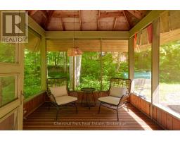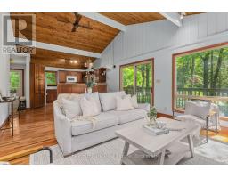 Welcome to this cheerful home at 115 Woodland Drive. Situated within a lush forested lot, this picturesque property offers seamless outdoor living. As you arrive, the stone walkway invites you to explore this home, its perennial gardens and landscape. Upon entering the foyer, the vaulted ceilings highlight an open-concept main living area. You are immediately drawn to the fireplace, the focal point of the living room with its wall-to-wall brick surround and mantle. The dining room area is open, and sliding doors lead to the exterior decking, which wraps this home with a view of the forest from every vantage point. The kitchen, with its updated cabinetry and granite countertops, overlooks the living space and is ideal for entertaining. Included on this level are three large bedrooms and a thoughtfully updated 4-piece bathroom complete with tub and walk-in shower. The lower level expands your living space with a recreation room and an additional wood-burning fireplace, providing another inviting area for relaxation. The walkout, with oversized sliding doors are an opportunity to enjoy the back yard area. Also on the lower level is a room suitable for an office or flex space and an additional 4 piece bathroom. Outside, the oversized deck is inviting and a great place to dine and host a gathering. The screened-in Muskoka room is a thoughtful addition for a late-evening retreat. This delightful property is ideally situated to enjoy Huntsville's abundant recreational opportunities, with Hidden Valley Highlands Ski Area and Deerhurst Resort just moments away. You'll also find yourself in close proximity to pristine golf courses and beautiful lakes, making it a great location for outdoor enthusiasts. (id:63952)