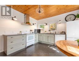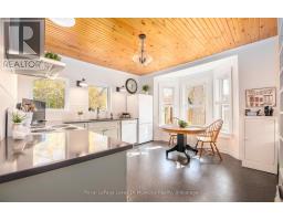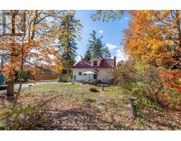 Sought after location in the heart of downtown Huntsville but tucked away on an oversized lot that feels more rural. Meticulously maintained 4 bedroom residence boasts modern amenities with all of the design charm of a vintage home. Original hardwood floors in the open concept living dining and the 2 main level bedrooms. There is a lovely gas fireplace in the living room and ample windows to create sunlit living spaces. Gorgeous recent kitchen renovation with up to the minute cabinets with quartz countertops, built in shelves, ceiling is lovely pine to maintain the feel of the home and a bay window with seating area, beautiful lighting and a door to a little deck ideal for your barbeque. 2 main level bathrooms, the 2 pc includes the laundry and the 2nd 4 pc bathroom have been renovated and are lovely. The upper level features 2 large bedrooms, 1 currently being used as the primary. There is room on this level for a bathroom to be added if a buyer wishes. Also a bonus kids play area, great for a nap. The fabulous large lot offers room for a detached double garage and it may be possible to add an ADU on top as well (buyer should make their own inquiries). The 2 sea cans, 20' and 40' have electricity and the 20' has heat. The sea cans have been inspected and permitted with 220 (50amp) as the current owner is a welder. He uses one as a workshop and the other is a "man cave". New A/C 2022, RV receptical and water hook up in the yard, updated electrical panel and installed underground service. This home and property are an absolute pleasure to view. Reasonable costs to heat with forced air gas and also hot water tank is gas. (id:63952)