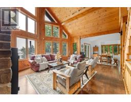 Tucked into a peaceful, tree-lined setting with stunning southern views over Lake of Bays, this charming 4-bedroom, 3-bath Viceroy-style home or cottage offers over 2,100 sq.ft. of thoughtfully updated living space. Inside, soaring ceilings and wall-to-wall windows invite the outdoors in, while a reimagined kitchen, warm wood accents, and a striking stone fireplace create a welcoming atmosphere year-round. The main level includes two comfortable bedrooms, a full bath, and a spacious laundry room, while the upper loft-style suite offers lake views, a walk-in closet, a private ensuite, and access to a brand new balcony deck the perfect spot for morning coffee. Downstairs, the walkout level features a granite-tiled rec room with a woodstove perfect for cozy evenings after a day on the trails around Lake of Bays or the lake. This home is as functional as it is beautiful, with a number of recent upgrades that add peace of mind: a new septic pump and line, a new well pump, air conditioning, and the finalized purchase of the Shore Road Allowance and survey. Outside, enjoy a brand-new crib dock and floating dock that enhance your private sand waterfront experience just across the cottage road. A rebuilt triple garage offers abundant space for vehicles, recreational gear, or a workshop setup. Whether you're searching for a weekend escape or a full-time lakeside lifestyle, this property is an opportunity on one of Muskoka's most desirable lakes. Book your private tour today and start your next chapter at the lake. (id:63952)