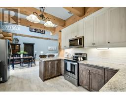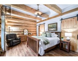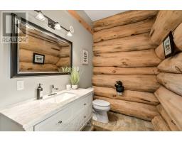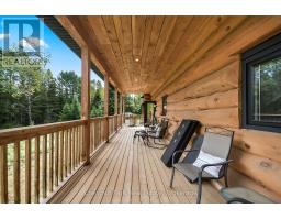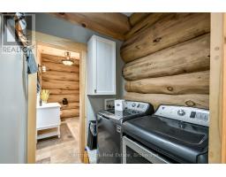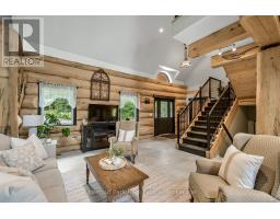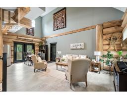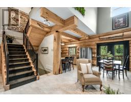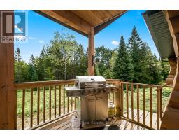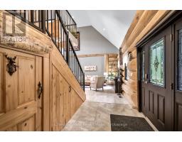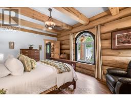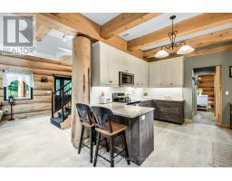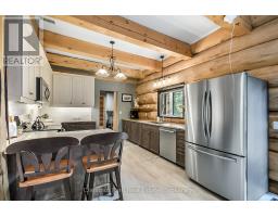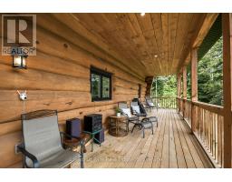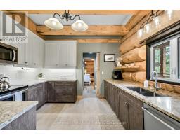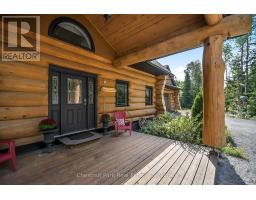 Tucked away on a 2.5 acre escape, this custom-built Scandinavian hand scribe log home welcomes you with its soul-soothing blend of rustic elegance and modern comfort. Despite its incredible privacy, this home is in the vibrant community of Huntsville, Muskoka, surrounded by natural beauty, this one-of-a-kind retreat offers a life where every day feels like a getaway. Masterfully crafted by Little Log Homes in 2020 for the current owner, this remarkable property showcases massive hand-hewn logs, soaring ceilings, and an impressive log entry covered porch that immediately sets the tone for the craftsmanship within. Huntsville is the largest community in Muskoka offering charming shops, restaurants, golf courses, live theatre & access to Arrowhead Park. Only 5 years old & meticulously maintained, this home is a rare opportunity to own a truly one-of-a-kind log home retreat. 1 minute to the Big East River, for casting a fishing line, or enjoying a peaceful paddle, and just minutes for a stroll alongside the Big East River to the historic Dyer Memorial. This property invites a slower pace and a deeper connection to nature. A truly unique home that blends character, comfort & the spirit of the outdoors. Bungaloft oor plan with over 1800 sqft of living space on the main level second level. Main floor primary bedroom with 5pc ensuite bath & walk-in closet with 2 guest rooms, office & 3pc bath on second level. 2 pc powder room & laundry on main level. There are many extra features to this home to name a few; quartz counter tops, hot water on demand, central vac, central air, oversized detached garage with extra high garage door, Generlink generator system to run entire home, 10' main floor ceilings, 9' second level ceilings, ICF foundation, 46' covered deck overlooking natural treed surroundings. Full walk-out basement with additional living space (663.50 sqft approx) - in-law suite capability with kitchenette, 3 pc bath with large family room. (id:63952)