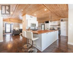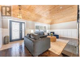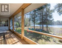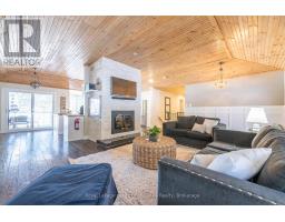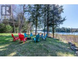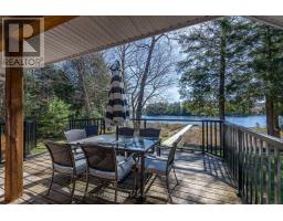 Exceptional offering, ideal 3.2 acres, 215' lakefront on pristine Pell Lake offering an Algonquin Park feel as you look across the lake towards the Limberlost Forest and Wildlife Reserve only minutes to Hidden Valley ski hill, golf courses and 15 minutes to vibrant downtown Huntsville. Pen Lake beach and boat ramp offering 40 miles of boating is less than 5 minutes away. Absolutely breathtaking views and such a serene setting with only 7 owners on the lake. This thoughtfully designed 1741 sq ft bungalow with full walk out finished lower level features 5 bedrooms and 3 full bathrooms and is nestled privately from the year round road. The main level boasts a gourmet style kitchen with huge center island, dining overlooking lake vistas, family size living room with vaulted pine ceilings and wood burning fireplace. Main level laundry. Primary bedroom boasts an ensuite and walk out double patio doors to the Muskoka room. 3 bedrooms main level and 2 in the lower. Lower level features great room for movie nights, games room including a foosball table, pool table, and electric fireplace. Adjacent room with bar, sink and fridge is great for entertaining or for additional guests. Main level large mud room/foyer could be good for an artist studio as well. Walk out on lakeside to decking with bbq and another access to the Muskoka room. Waterside firepit with all exterior furniture included. Dock was recently installed and has a deck/platform to enjoy sitting on the water and the fabulous island view! Lakefront is 3' deep at the end. Walk around covered deck from rear to front of the house. Large double car garage, air conditioning, wired in generator, small barn style storage building and sheds for your firewood and outdoor tools and toys. Comes outfitted with furnishings, bedding, towels, boats on site, just a few staging items excluded. Equipped and ready for you to enjoy this summer! Airbnb ready if desired, ask for info and income. (id:63952)