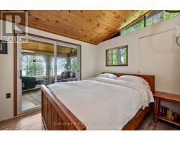 This lakeside retreat offers everything you're looking for in a getaway or year round home. Situated along a private road on the tranquil shores of Six Mile Lake, the 1,500 sq. ft. cottage enjoys a pristine sandy beach with coveted southern exposure. The property is nestled in a serene bay and features gracefully terraced decks that wrap around the cottage perfect for entertaining or soaking in the view. Inside, the home offers a spacious living room and a sunroom, both designed for relaxing and enjoying the natural surroundings. The updated kitchen and numerous new windows ensure a bright, modern feel, and the recently added full size washer and dryer make daily life easy. A renovated bathroom features contemporary finishes, meaning this cottage is truly move in ready. With three comfortable bedrooms and thoughtful updates throughout, this exceptional property is ready for you to unwind and savour lakeside living. (id:63952)