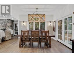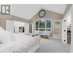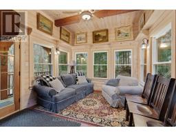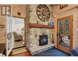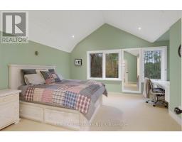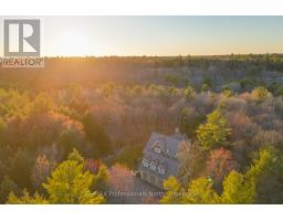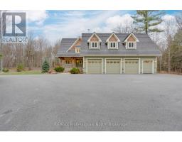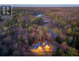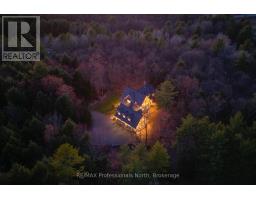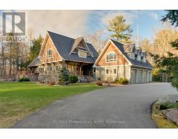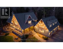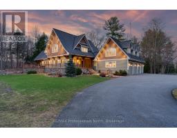 Welcome to an extraordinary private estate in the heart of Muskoka, where refined design meets the natural beauty of the surrounding landscape. Offering over 7000 square feet of thoughtfully crafted living space, this impressive property includes a 1000 square foot heated garage with floor drains and a finished loft above, along with three fully finished levels designed for elevated everyday living. At the centre of the home is a custom kitchen with premium appliances and exceptional attention to detail, seamlessly opening into the main living area where a stunning custom stone wood burning fireplace creates a striking focal point. Just beyond, the Muskoka room offers a peaceful escape surrounded by windows that draw the outdoors in, complete with a wood burning fireplace for year round comfort. A dedicated main floor office provides the perfect balance of productivity and connection. The second level hosts three spacious bedrooms, each with vaulted ceilings, walk in closets, and private ensuites with heated floors, while a fourth bedroom with its own bathroom is located on the lower level. The fully soundproofed lower level is designed for entertainment, featuring an eight seat tiered theatre, wet bar, and versatile bonus space ideal for a studio, gym, or playroom. Set on 16.74 acres of private land, the property features approximately half a kilometre of professionally built trails, three serene ponds for paddling or skating, and an invisible dog fence covering five acres. An automatic Kohler generator powers the entire home for added peace of mind. Located along Muskoka Beach Road, one of the region's most iconic drives known for its stunning fall colours, this property offers a rare blend of privacy and convenience just minutes to Bracebridge and Gravenhurst and close to several renowned golf courses. Floor plans and feature sheet available. (id:63952)