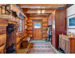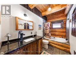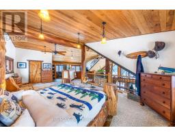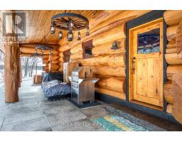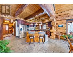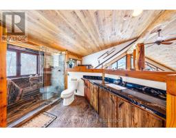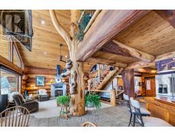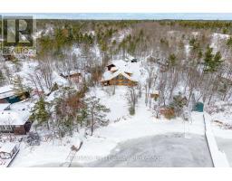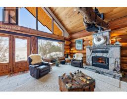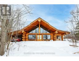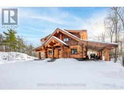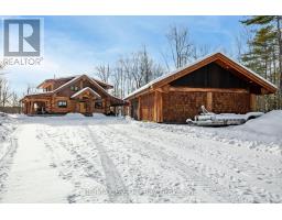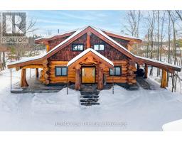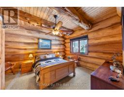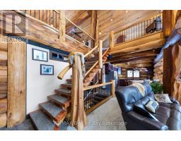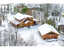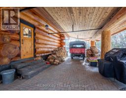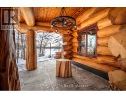 Welcome to an exceptional log estate on the shores of Georgian Bay, offering 222 feet of pristine shoreline and beautiful sand beach. With coveted southwest exposure, enjoy all-day sun and unforgettable sunsets-perfect for swimming, boating, and effortless waterfront living.This custom-designed, four-season retreat features 2 bedrooms, 2 bathrooms and a dramatic open-concept layout, masterfully crafted by Pioneer Log Homes of BC known for their show ''Timber Kings" www.pioneerloghomesofbc.com. Built with massive Western Red Cedar logs and posts, the home blends timeless craftsmanship with refined comfort.A striking stone fireplace anchors the great room, creating warmth and old-world ambiance throughout the seasons.The primary suite is thoughtfully designed as a private loft retreat overlooking the living area below, complete with its own ensuite bath. Vaulted ceilings and exposed logs enhance the sense of space and light, creating an airy, lodge-inspired sanctuary that feels both intimate and connected.The lower level offers laundry and additional living space with a built-in Murphy bed-providing a flexible and comfortable guest accommodation without compromising space.At the water's edge, exceptional amenities include a stable deep-water floating dock, 3 heavy-duty marine rail systems, dry storage boathouse, charming kids' playhouse, and multiple lakeside sitting areas designed for entertaining and quiet relaxation.Enjoy evenings under the stars with a wood-fired hot tub and outdoor firepit.There is a spacious, four season matching log workshop:a perfect hideaway for crafts, games room & massive storage for cars and boats.The property is privately set on a year-round maintained road just 10 minutes from Highway 400 (Exit 168), this property offers both seclusion and convenience. Nestled within a sheltered bay, you're only a 15-minute boat ride to the open waters of Georgian Bay.A rare opportunity to own a legacy waterfront retreat where luxury meets nature. (id:63952)