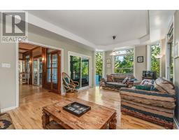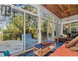Discover a rare and extraordinary opportunity to own more than 20 acres of pristine Muskoka forest with over 1,600 feet of private waterfront along the shores of 6 Mile Lake. This exceptional property combines the rustic charm of cottage living with the space, comfort, and quality expected in a luxury retreat. Spanning over 3,600 sq. ft., this expansive 8-bedroom, home offers endless possibilities - whether you envision a family compound, corporate getaway, or serene private retreat. As you arrive, a grand covered porch and wide front hall welcome you inside. The wood staircase sets the tone for the home's warm and timeless character. Two distinct wings are seamlessly connected by a spacious dining room with a walkout to a three-season sunroom - perfect for relaxing on a rainy day. The main floor features two wood-burning fireplaces framed in hand-picked stone, three inviting living areas, and a bright, open kitchen with floor-to-ceiling windows offering sweeping lake views. Stone countertops, ample cabinetry, and generous workspace make it both functional and elegant. Step outside onto the massive wrap-around deck, ideal for entertaining, dining, or enjoying a quiet morning coffee. Unwind in the hot tub overlooking the forest and lake, or relax on the private balconies, shared by the two primary bedrooms. Follow the wooded path down to your expansive private dock, where you'll be surrounded by untouched shoreline - a rare find in Muskoka. Additional features include a detached garage and workshop with carport, perfect for storing watercraft, ATVs, and equipment. A metal roof ensures durability and peace of mind for years to come. This property offers complete privacy, yet remains just minutes from Highway 400 and under two hours from Toronto. Whether as a family retreat, investment opportunity, or exclusive private getaway, this remarkable 6 Mile Lake property embodies the best of Muskoka living - where luxury meets nature. (id:63952)