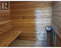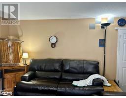 Nestled among the trees, this charming two-story condominium townhouse offers proximity to the ski chalet and a wealth of year-round recreational opportunities. Enjoy access to a private beach for residents in Hidden Valley in the warm months and walking distance to the ski hill in the winter. A short trip of less than ten minutes gets you to the heart of Huntsville with all of the amenities the Town has to offer. The unit features a large, open main room with a natural gas fireplace and open dining room, visible from the kitchen over the breakfast bar. The patio door opening onto the deck from the living room provides easy access to the back yard where there is a natural gas hookup for a barbecue. The main entrance is spacious with a closet and quick access to the powder room on the main floor. Upstairs, the large main bedroom easily accommodates a king size bed and dressers on either side. The balcony walkout from the main bedroom overlooks the back yard and the forested hillside beyond. A 4-piece en-suite bathroom with a long countertop is accessible from the main bedroom. Laundry on second floor. The front bedroom features a large window through which the sunrise over Peninsula Lake can be enjoyed and the third bedroom features two windows overlooking the front of the unit. The top floor bathroom has a bathtub with a shower as well as a standalone shower. In the fully finished basement there is a large carpeted recreation room and a 2-piece bathroom. At the end of the hall is a built-in sauna big enough for four with a tiled room with a shower. Two parking spaces are conveniently located right at the front door. Features include: a rented water purifier / softener, PEX plumbing, Vinyl windows and patio doors with functioning screens, Ecobee thermostat, Moen Flo water monitor and whole home leak protection (2024), water pressure control valve (2024), Furnace replaced in 2016 and maintained annually, Telus security system, natural gas heating & bbq connection. (id:63952)