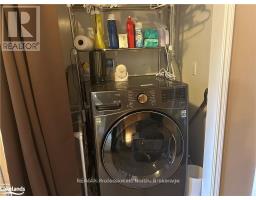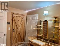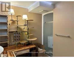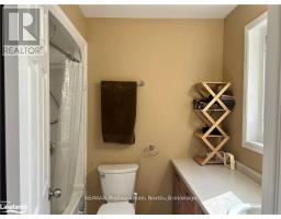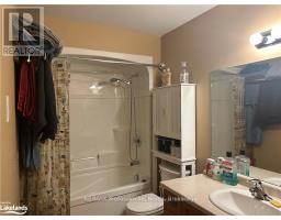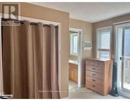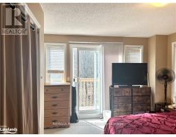 Nestled among the trees, this charming two-story condominium townhouse offers proximity to the ski chalet and a wealth of year-round recreational opportunities. Enjoy access to a private beach for residents in Hidden Valley in the warm months and walking distance to the ski hill in the winter. A short trip of less than ten minutes gets you to the heart of Huntsville with all of the amenities the Town has to offer. The unit features a large, open main room with a natural gas fireplace and open dining room, visible from the kitchen over the breakfast bar. The patio door opening onto the deck from the living room provides easy access to the back yard where there is a natural gas hookup for a barbecue. The main entrance is spacious with a closet and quick access to the powder room on the main floor. Upstairs, the large main bedroom easily accommodates a king size bed and dressers on either side. The balcony walkout from the main bedroom overlooks the back yard and the forested hillside beyond. A 4-piece ensuite bathroom with a long countertop is accessible from the main bedroom. Laundry on second floor. The front bedroom features a large window through which the sunrise over Peninsula Lake can be enjoyed and the third bedroom features two windows overlooking the front of the unit. The top floor bathroom has a bathtub with a shower as well as a standalone shower. In the fully finished basement there is a large carpeted recreation room and a 2-piece bathroom. At the end of the hall is a built-in sauna big enough for four with a tiled room with a shower. Two parking spaces are conveniently located right at the front door. Features include: a rented water purifier / softener, PEX plumbing, Vinyl windows and patio doors with functioning screens, Ecobee thermostat, Moen Flo water monitor and whole home leak protection (2024), water pressure control valve (2024), Furnace replaced in 2016 and maintained annually, Telus security system, natural gas heating & bbq connection. (id:63952)