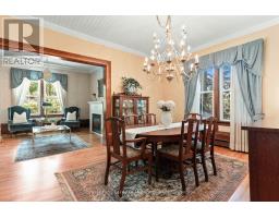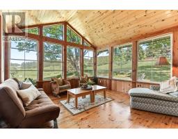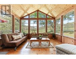 Set on a level 1.09-acre sprawling lot along Fraserburg Road, this distinguished century home offers 2,000+ square feet of living space, an attached single garage with storage loft, and the convenience of municipal water and sewer services. The front porch leads into a gracious interior with original narrow plank hardwood flooring and detailed wood trim. The elegant living room is anchored by a natural gas fireplace and flows seamlessly into a formal dining room. The updated eat-in kitchen features warm wood cabinetry, modern appliances, and direct access to both a side-entry porch and a remarkable 16x16 screened Muskoka Room with vaulted ceiling and hardwood floors. French doors open to a large rear deck, creating a seamless connection between indoor and outdoor living. A stylish 4-piece bathroom with linen closet and modern vanity completes the main level. Upstairs, the carpeted second floor includes three well-appointed bedrooms and a bright sitting area. The private primary suite with original hardwood, accessed through a dedicated lounge or reading room, includes a secondary staircase leading to the kitchen below. Two additional bedrooms, each with closets, complete the upper level. The lower level features a walk-out to the rear yard, a recently renovated family room finished with ceramic tile, a modern 3-piece bathroom with built-in storage, and separate utility, storage, and laundry areas. The backyard is a picturesque retreat, with wide open lawn, mature trees, and elevated views that create a peaceful, park-like setting. This is a rare opportunity to own a stately and enduring residence that gracefully balances heritage character with contemporary comfort. All of this is just minutes from downtown Bracebridge, with easy access to schools, shopping, restaurants, and community amenities. Recent upgrades - natural gas fireplace 2004, windows 2005, basement renovations 2003/2009, Muskoka Room 2006, shingles 2016, Gas-fired hot water boiler Nov/25. (id:63952)