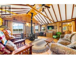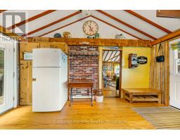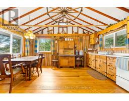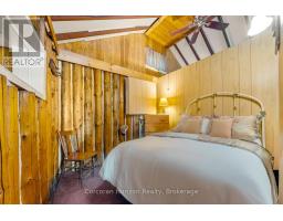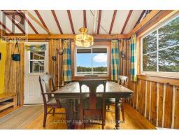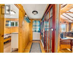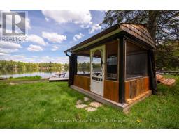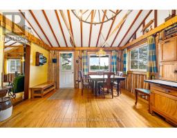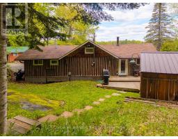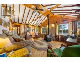 This charming 4-bedroom, 4-season cottage offers the perfect balance of vintage character and modern convenience. Set on 110 feet of northern exposure shoreline, it delivers stunning views and peaceful sunsets, along with both shallow beach access and deep water off the dock for diving, fishing and boating. Inside, the living room's woodstove creates a warm gathering spot, complemented by electric baseboard heating and waterlines with heat trace, making year-round use an option. The cottage is powered by an updated 100-Amp electrical service breaker panel. Step outside to find ample decking for entertaining, a screened 10x10 gazebo with power right off the beach, and a 20x10 workshop (60 amp service) for storage and/or hobbies. The 50-foot floating dock is already set up with two benches and a table, ready to keep the good times rolling lakeside. The water pump was updated in spring 2025. Both downtown Huntsville and Bracebridge are only ~15 minutes away. Whether you're looking for a family getaway or a potential short-term rental, this Mainhood Lake property offers quiet, comfort, and a great opportunity to enjoy lakeside living. (id:63952)