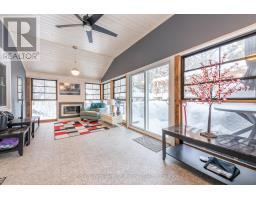 Sought after sunlit and spacious 3 bedroom, 2 bathroom recreational residence is an ideal home or cottage nestled in the heart of desirable Hidden Valley community. Ski to the hill or stroll to the fabulous 300'+ beachfront on prestigious Pen Lake with a private park featuring beach volleyball, bathroom, picnic tables, space to play or lounge as part of your membership in the Hidden Valley Property Owners Association. This residence offers an attached double car garage, such a bonus for your lifestyle and hard to find in Hidden Valley. Updated gourmet kitchen features large center eating island, gas stove, and all updated appliances in the beautiful open concept main living area with beautiful Muskoka stone gas fireplace to give the space a rustic and cozy feel while up to the minute decor surrounds you! Walk out from the main living area to your quintessential sunlit and spacious 3 season Muskoka room with another fireplace to take the chill out of those cool evenings. From there, stroll to your massive entertaining deck for bbqing, private dining, entertaining, sun bathing...your fabulous new life, you decide. 3 bedrooms on main level gives good privacy for sleeping from living areas. The lower level does not feel like a basement with a walk out door to your side yard. Great spot for an in law suite or family area with a 3rd gas fireplace and 4 pc bathroom. Privately set back from the quiet street with a level double driveway, ample for you and your guests. The shingles are new in 2022. Municipal water is also a bonus. (id:63952)