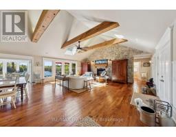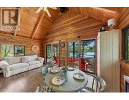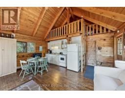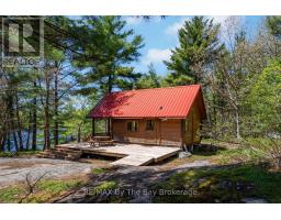 Only ten minutes west of Hwy 400 (Exit 168), this extraordinary 46-acre property offers the ultimate in privacy, natural beauty, and refined lakeside living. With 482 feet of west-facing rocky shoreline on Buck Lake and thousands of acres of pristine Crown land as your neighbour, this is a rare opportunity to own a true sanctuary. The 2,200 sq. ft. ranch-style, four-season home is beautifully finished, fully furnished, and move-in ready. Step inside to an open-concept living space featuring vaulted ceilings with exposed beams, antique wide-plank pine floors, and a chef's kitchen overlooking a breathtaking stone fireplace and sweeping lake views. The roof and decks have recently been replaced, while the attached two-car garage provides secure, weather-protected entry. Guests will fall in love with the spacious cedar guest cabin, complete with a main-floor bedroom, loft bedroom with lake views, and a large sun deck. A short path leads to the deep-water dock, where crystal-clear swimming and unforgettable sunsets await. This property is equipped with a wired-in generator, 400-amp electrical service, and all the comforts for year-round enjoyment. Buck Lake is a spring-fed, 50-foot-deep lake, with exceptional swimming, fishing, and tranquility - with only five cottages along its eastern shore. The lake is surrounded by Crown land, offering endless trails for hiking, snowmobiling, and exploration in every season. Whether you're seeking a private retreat, family cottage compound, or nature lover's paradise, this property delivers a lifestyle few will ever experience. (id:63952)