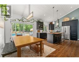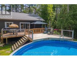 Welcome to 2698 Old Muskoka Road in Utterson, a rare offering featuring not one, but two fully self-contained homes on one property. Combined, they offer 6 bedrooms, 4 bathrooms, and 2 kitchens, making this an ideal setup for multi-generational living, rental income, or hosting guests with complete privacy. The main residence includes 4 bedrooms and 3 bathrooms, thoughtfully designed with a Muskoka-inspired aesthetic. Built in 2019 and set well back from the road, it offers both privacy and modern comfort. A covered front porch and grand 8' entry door welcome you inside, where vaulted ceilings, hardwood floors, and abundant natural light enhance the open-concept kitchen and dining area. The main-floor primary suite features a double closet and a spa-like ensuite with dual sinks. A WETT-certified wood-burning fireplace adds warmth and character to the living room, while the finished lower level expands the living space with a family room, three additional bedrooms, an office or hobby room, and a full bathroom. Step out to the private back deck overlooking the yard and above-ground pool-perfect for summer entertaining. Additional highlights include an ICF foundation, Lepage windows, and a double attached garage. The secondary dwelling is completely separate and equally well-appointed, offering 2 bedrooms, 1 bathroom, and its own kitchen. The bright, open-concept layout features a custom kitchen and a cozy propane fireplace with a shiplap mantle. Upstairs, the primary suite includes a 3-piece ensuite with an oversized tiled shower. The lower level provides a second bedroom, workshop or storage space, and a walkout with potential for a future deck. Both homes are fully self-sufficient, each with its own septic system, modern finishes, and functional layouts. With rental potential of $2,500+ per month, this property offers incredible versatility. Whether you're looking for a family compound, a private Muskoka retreat, or an income-generating opportunity. (id:63952)
