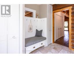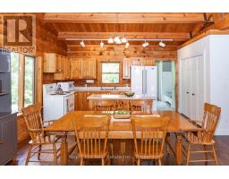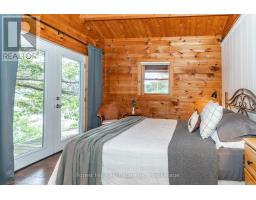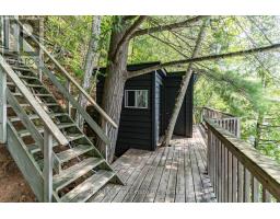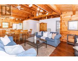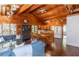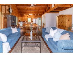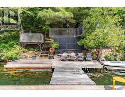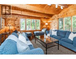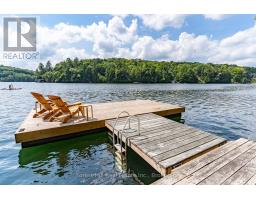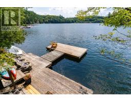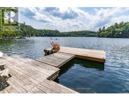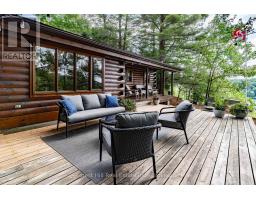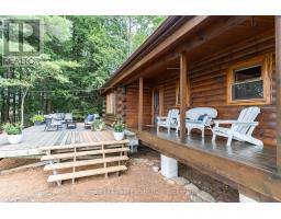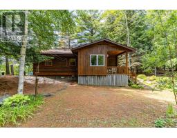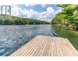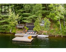 Super sharp, unique, immaculately maintained Nova Scotia pine scribe three bed log cottage or home. Century pines, western sunsets and breezes grace this relaxing peaceful private locale, majestically perched above fabulous crystal clear Skeleton Lake. The true essence of cottaging abounds, warm cozy character filled exposed post and beam interior with engineered hardwood floors. Lovely master suite with lake views and private deck. Great entertaining with the open concept kitchen, dining and living room space. There are two wonderful covered porches to escape the sun or take in a summer rain storm. A large newer lounge deck to marvel at the star filled dark sky night that Skeleton Lake is known for. Enjoy great deep water swimming and fishing from the fixed and floating docks at the shore, plus a dry boathouse/storage building for all the toys. There is a fun outdoor shower plus an additional storage building, comes furnished. Enjoy all four seasons at beautiful Skeleton Lake! (id:63952)