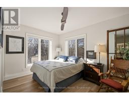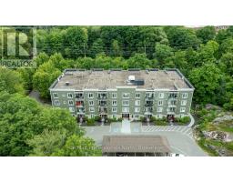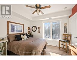 $730 MonthlyWelcome to this bright, immaculate 3 bedroom, 2 bathroom condo in Granite Trail, one of Gravenhurst's most desirable and well-constructed condo buildings. Built in 2008 with full ICF construction, this exceptionally quiet, well-managed building is the only condominium in Gravenhurst with underground parking and includes handicap accessible features throughout. The open-concept living, dining, and kitchen area is filled with natural light from large South facing windows and glass doors leading to a private, covered terrace, perfect for enjoying peaceful elevated forest views. The unit has been beautifully renovated, featuring new flooring, kitchen, bathroom vanities, fresh paint, modern light fixtures, electronic window coverings, and upgraded appliances, it is truly a move-in ready unit. The thoughtfully designed layout is separated into two private wings. The primary wing offers a spacious primary bedroom overlooking the forest, a 4-Pc primary bath with jet tub, a walk-in closet with pocket door, and an additional room ideal for a guest bedroom or private office. The second wing features a large guest bedroom with forest views and a close by updated 3-Pc bathroom, providing excellent privacy for visitors. Included are one exclusive underground parking space (#21), one exclusive same-floor storage locker (#2), and additional above grade public parking spaces. Residents enjoy manicured grounds and worry-free living with all exterior maintenance, groundskeeping, common elements, and water/sewer covered by the condo corporation. Condo fees are $730/month uniquely the same across all unit owners, no rentals, HWT on demand with a ventilator provides very low heating costs. An exceptional opportunity to own a bright, spotless, pride-of-ownership home offering comfort, privacy, and low-maintenance Muskoka living. (id:63952)