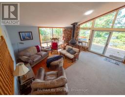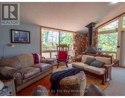 Escape to your exclusive waterfront sanctuary on Bone Island. This boat-access-only retreat is nestled on a spacious 3 -acre lot with 400 feet of mesmerizing water frontage, offering you the ultimate getaway from the hustle and bustle of daily life. Enjoy relaxing on the wrap-around deck and immerse yourself in the essence of cottage life. Gather around the firepit for cozy evenings under the stars, or retreat to the enclosed patio for added privacy. Inside, the charm continues with interior windows that frame picturesque water views, while a fireplace in the main living area adds the perfect warming touch. With 3 bedrooms and 2 full bathrooms, this cottage offers ample space for hosting and entertaining. Located just a 20-minute boat ride from Honey Harbour, this private property provides the perfect blend of seclusion and accessibility. (id:63952)
