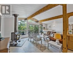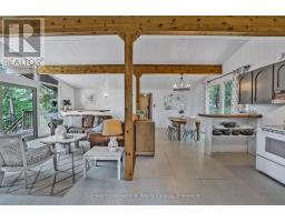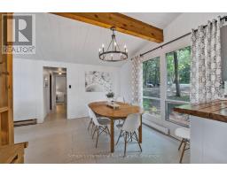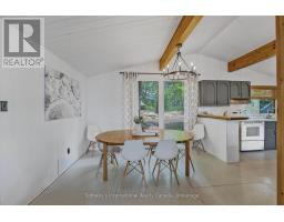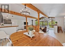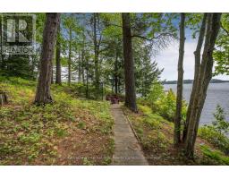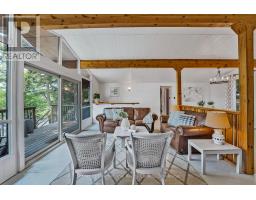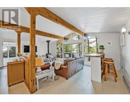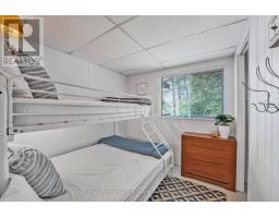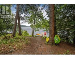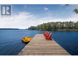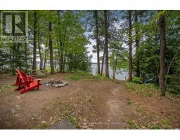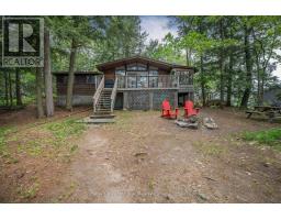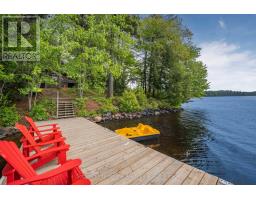 Private Point Retreat with Panoramic Sunrise & Sunset Views. Welcome to your dream getaway, perfectly positioned on a private point of land with uninterrupted lake views from sunrise to sunset. This idyllic cottage offers all-day sun and unmatched privacy, with no neighbouring docks in sight just you, the water, and the sky. Spend long, sun-soaked days on the dock, where you can leap into deep water from the end or wade in gradually via the shallow, sandy shoreline ideal for little ones. Evenings are just as magical, gathered around the landscaped lakeside campfire, stargazing with loved ones. Step inside through the charming sunroom/mudroom, an inviting space to enjoy your morning coffee while soaking in the view. The open-concept interior features a spacious great room with vaulted ceilings, seamlessly blending the kitchen, breakfast bar, dining, and living areas all with stunning lake vistas. The cottage offers three bedrooms, including two with vaulted ceilings for added charm and a bunk room made for childhood adventures and sleepovers. Step outside to a partially covered deck perfect for lounging, BBQs, and al fresco dining. Paddle across the lake to a nearby beach and park, or stay in and enjoy excellent fishing and watersports right from your own shoreline. Located just 5 minutes from the local grocery store, hardware store, LCBO, and restaurants, and a short drive to Parry Sound, Bala, and Port Carling, this is the ultimate blend of seclusion and convenience. Cottage memories begin here. (id:63952)