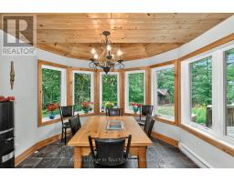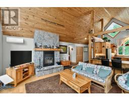 Welcome to 390 Island 360, a rare and remarkable offering on Hungry Island on beautiful Six Mile Lake. This island-access property spans nearly 19 acres, including a stunning 5.5-acre main parcel with 627 feet of natural shoreline and a beautifully built cottage featuring high ceilings, rich pine finishes, a cozy stone fireplace with insert, and Baseboard heating, and a AC window unit provides Cooling in the summer. Also included is over 13 acres of recreational land in the center of Hungry Island, an ideal setting for ATVs, hiking, and snowmobiling, with two well-defined trails and excellent winter access. A zoning exception permits the construction of a two-slip wet boathouse, and the property comes with a previously approved permit for an 800+ sq ft bunkie, offering even more potential. Conveniently, the sale includes an owned share of mainland parking and a boat slip just a minute away, making access simple and stress-free. Whether you're looking for a peaceful summer escape or a four-season adventure base, 390 Island 360 combines rustic charm, modern comforts, and endless recreational possibilities in one extraordinary package on Six Mile Lake. Ask Listing agent for copy of floorplans (id:63952)