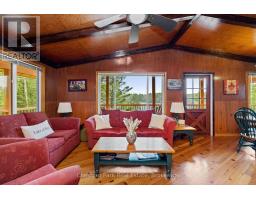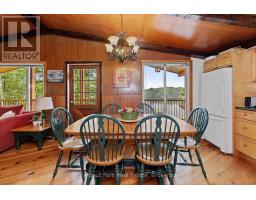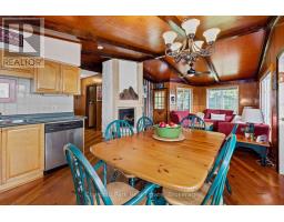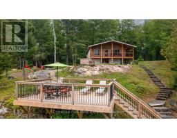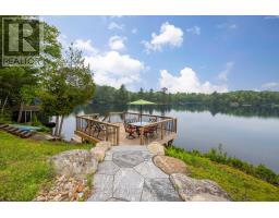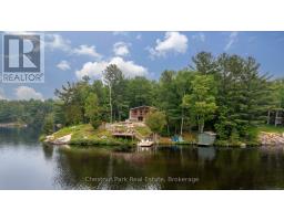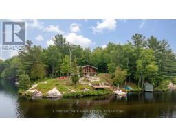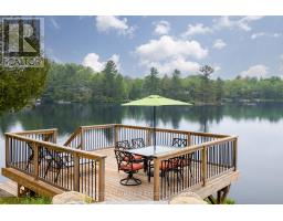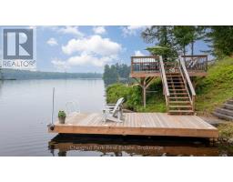 Welcome to 4 Mallard Lane on picturesque Dickie Lake, where 310' of panoramic northwest-facing shoreline offers all-day sun and postcard-worthy sunsets. Set on a gentle point with 0.64 acres of beautifully landscaped grounds and naturally exposed Muskoka granite, this cherished 3-season cottage has been loved by the same family for over 50 years - now it's ready to welcome yours. The raised bungalow features 4 bedrooms, 1.5 baths, and a bright open-concept kitchen, dining, and living area with a cozy propane fireplace and breathtaking lake views. From the living room, step onto an expansive wrap-around deck (2017) perfect for sipping your morning coffee while soaking in the serenity of the lake. Downstairs, you'll find a fun retro bar and a spacious flex room ideal for games, lounging, or extra storage. A convenient shower in the lower level makes post-swim cleanup a breeze. Stunning Muskoka granite walkways (2023) wind through the yard, connecting multiple granite patio spaces, a firepit for stargazing and s'mores, and the lakeside entertaining areas. Between the patio area and the dock, a large elevated deck (2021) provides an amazing space for sunbathing or lakeside dining. The water off the dock (2021) is perfect for swimming or mooring your boat, canoe, kayak, or paddleboards and the included boathouse offers secure storage for all your lake toys. A wired-in Generac generator adds peace of mind during cottage stays, rain or shine. The septic system was replaced in 2004, giving peace of mind for years to come. Whether it's morning coffee on the dock, sunset dinners on the deck, or paddling out for an early morning swim, this is cottage living at its finest. Only 20 minutes from Huntsville and just minutes to the vibrant village of Baysville - home to local gems like Cast Iron Restaurant, Miss Nelle's, Lake of Bays Brewing, Humble Pie Pizzeria and the famous summer Walkabout Festival - this is your Muskoka escape. Let this special place become part of your story. (id:63952)