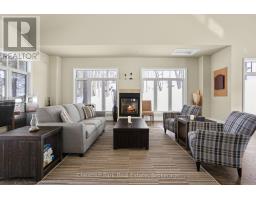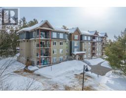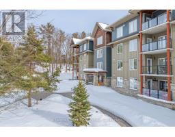 Welcome to one of the premier suites at Granite Springs- a beautifully upgraded two bedroom, two bathroom condo offering refined living in the heart of Bracebridge. Located on the fourth floor with desirable South East exposure, this exceptional unit enjoys abundant natural light and tranquil forest views from your private balcony. Over the past year, more than $60,000 has been invested in upgrades, transforming this condo into a truly turn key home. Highlights include new engineered wood flooring and carpet, fresh paint throughout, custom blinds and updated faucets, light fixtures and hardware. The Kitchen comes complete with all new stainless steel appliances, updated cabinetry, a modern peninsula, expanded pantry and tile backsplash. Every detail has been carefully selected to enhance both style and functionality. The open-concept layout is ideal for everyday living and entertaining with a spacious living and dining area featuring a gas fireplace with tile surround and live edge mantle. Living space flows seamlessly to the balcony- the perfect spot to relax and unwind. The generous Primary suite boasts a custom designed walk in closet and spa like 3 piece ensuite featuring a unique glass tiled accent wall and upgraded fixtures. The spacious second bedroom and 4 piece washroom offers comfort and convenience for your guests. Residents of Granite Springs enjoy access to an impressive Clubhouse featuring a library, fitness studio, party room and fully equipped kitchen- perfect for hosting gatherings or connecting with neighbours. Step outside to explore the walking trails just beyond your door. This condo is situated close to downtown Bracebridge, near public transit and close to the Hospital. This location offers easy access to shopping, dining and essential services. A rare opportunity to own a premier, extensively upgraded unit in one of Bracebridge's most desirable condominium communities. Move-in and enjoy maintenance free living at it's finest. (id:63952)