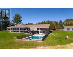TURNKEY! Approximately 5000 sq ft of living space. Welcome to your private Muskoka retreat, perfectly positioned on 4.92 acres with 675 ft of pristine shoreline and southwest exposure on quiet Weeduck Lake. Just mins from Huntsville, this property offers a rare blend of privacy, comfort, and convenience, which is ideal as a seasonal escape or a full-time residence. This thoughtfully laid-out home features 3 bedrooms on the main level and 4 additional bedrooms on the lower level. A self-contained one-bed, one-bath in-law suite offers privacy for guests or extended family. The open-concept kitchen features a granite island, double wall ovens, and an oversized fridge and freezer, flowing into the Muskoka room and a dining area with built-in cabinetry and a charming brick fireplace. Step outside to the covered deck, perfect for dining or relaxing in all seasons. Enjoy a spacious family room with a gas-fired stove and a dedicated games room on the lower level. Walk out to your stone patio and private hot tub, or unwind by the sparkling inground pool, set against a lush forest backdrop. In addition to the attached 3-car garage, a separate detached 3-car garage (1,350 sq ft) adds ample space for recreational gear or workshop use. Recent upgrades include a new septic system (2025). Other home systems include on-demand propane water heater, UV water filtration system, water softener, and central air. At the water's edge, a 200-foot dock invites swimming, paddling, or fishing with stunning sunsets across the lake every evening. This is Muskoka living. (id:63952)