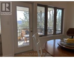 $659.49 MonthlyGrandview's Forest Hill in Muskoka, minutes from Huntsville offers an updated main floor condo with peaceful views and stair-free, low-maintenance living. This residence is ideal for those looking to downsize, investors, or anyone seeking a tranquil getaway. The condo features a bright 1-bedroom, 1-bathroom layout highlighted by hardwood floors and fresh paint throughout. The stylish kitchen is equipped with granite countertops and ample workspace, perfect for preparing meals. Large windows flood the space with natural light and offer treed views in every room. Relax in the inviting living room, complete with a cozy wood-burning fireplace that is WETT certified. The spacious bedroom provides a comfortable sanctuary, while the updated bathroom includes a walk-in shower. Additional highlights include in-suite laundry, a storage closet, a new natural gas furnace, and updated electrical systems. Located just five minutes from downtown Huntsville, the condo offers convenient access to Algonquin and Arrowhead Provincial Park, Hidden Valley Ski Club, several golf courses, and scenic trails that lead to Fairy Lake. Experience four-season living in one of Muskoka's most desirable communities. (id:63952)