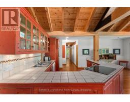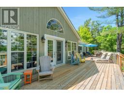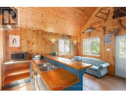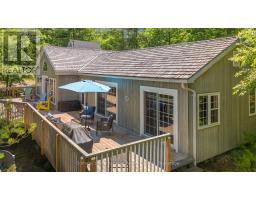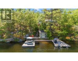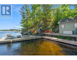 Welcome to your private waterfront escape on stunning Go Home Lake. With 160 feet of shoreline, two large docks, and incredible views over Paradise Bay, this beautifully renovated cottage offers the perfect blend of comfort, style, and adventure. Just a 10-minute boat ride from the marina, the property includes a spacious main cottage with a large addition, soaring vaulted ceilings, and high-end finishes throughout. The open-concept living room features a striking stone fireplace and walkout to a massive deck overlooking the water ideal for relaxing or entertaining. A custom gourmet kitchen with stainless steel appliances flows into the dining room, making hosting a breeze. The primary bedroom includes vaulted ceilings, water views, and direct deck access. Down by the water, there is a dock shed that sits right on the deck to store all of your lakeside lounging gear and water toys. An electric luggage carrier makes bringing supplies up the hill effortless. Out back, you'll find a shed and a separate art/craft studio for creative pursuits. A spacious bunkie provides extra room for family or guests with vaulted ceilings, two bedrooms, a living area, kitchenette, and its own deck. Whether you're soaking in the views, swimming off the dock, or enjoying cozy nights by the fire, this is lakeside living at its best. Accessed by boat only. (id:63952)