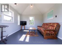 Riverfront Living in the Heart of Parry Sound -- Nestled along the tranquil Seguin River, this charming semi-detached home offers a rare blend of nature and convenience in one of Parry Sounds most sought-after locations. Featuring two bedrooms and nearly 800 sq. ft. of living space, the home is set on a 33' x 121' lot with a covered deck where you can unwind and enjoy peaceful river views. The property invites future possibilities with room for an addition, while the auxiliary riverside building provides incredible bonus space, ideal for a games room, art studio, yoga retreat, or whatever inspires your lifestyle. Slip a kayak directly into the river and explore the scenic waterways, or simply relax in the natural serenity at your doorstep. Perfectly situated within walking distance to downtown amenities, including shopping, restaurants, hospital, and more, this home offers both lifestyle and convenience. Whether you're seeking a starter home, a riverside retreat, or a strong rental investment in Parry Sound's growing market, the opportunities are endless on River Street. (id:63952)