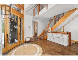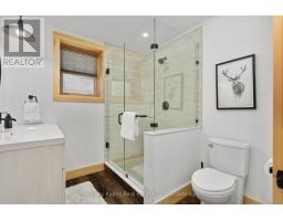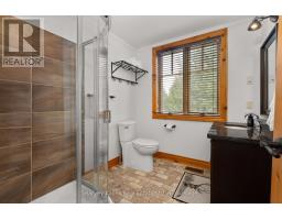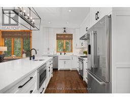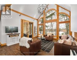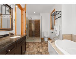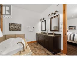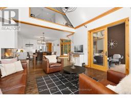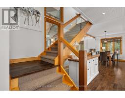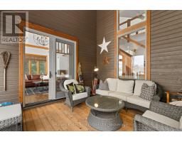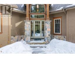 Experience elevated living in this 4 bed, 5 bath custom upscale home, perfectly positioned to capture views of the Deerhurst Highlands Golf Course. Set back from the road on a private lot, this impressive 3400sqft residence boasts a modern design and thoughtful functionality, complemented by a warm Muskoka feel. The main floor showcases an inviting open-concept layout anchored by an updated kitchen with a convenient new pantry and ample storage throughout. The spacious living area, highlighted by a gas fireplace, provides the perfect setting for gathering with family and friends. Expansive windows flood the interior with natural light and frame the lush fairway backdrop, while the screened Muskoka room extends the living space. The primary bedroom is conveniently located on the main level, featuring a luxurious 5-piece ensuite and walkout access to the tranquil outdoors. On the second level, two additional bedrooms offer privacy and comfort, each thoughtfully designed with a 3-piece ensuite bathroom and a multipurpose loft space that is ideal as an office, TV room, or games room. The walkout lower level expands your living space with a family room featuring a second gas fireplace, direct access to the hot tub and yard, an additional bedroom and full bath, plus in-floor heating available (not currently connected). Additional highlights include municipal water and sewer, natural gas forced-air heating, a wired generator, a double-car attached garage, full outdoor irrigation system and a fenced front yard. Live just minutes from skiing, golf, and lake access, and enjoy a practical, well-designed home in a sought-after Muskoka setting. (id:63952)