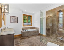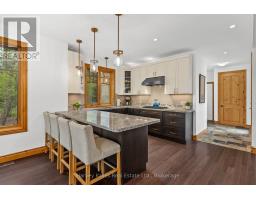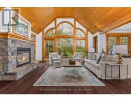 Craftsman-style bungalow with lower-level walkout, prominently situated on a quiet cul-de-sac, with views over the 9th hole of Deerhurst Highlands Golf Course. Surrounded by distinguished residences, this expansive property has been thoughtfully designed and meticulously cared for. Spanning nearly 3,000 square feet, this residence features three spacious bedrooms, each with its own full bathroom and generous closet space, to ensure maximum comfort for family or guests alike. The private, main floor primary suite is a dream escape featuring a 5pc ensuite with jacuzzi tub, heated floors, walk in closet and access to the screened Muskoka room. An open-concept floor plan enhances the homes functionality for both families or down sizers, highlighted by vaulted ceilings, gas fireplace and expansive floor-to-ceiling windows in the living room. The kitchen stands out with ample storage, built-in appliances (most new within the last year), and a large peninsula counter, making it a perfect space for culinary enthusiasts, entertaining and hosting large family gatherings. On the lower level, 2 additional bedroom suites are perfect for growing families centred by a generously sized family room with in-floor heating, gas fireplace, wet bar and walkout to the exceptionally private and level backyard. The screened Muskoka room and beautifully landscaped grounds with fire pit have been designed and created for enjoyment, and the double-car attached garage offers convenience and additional storage options and the driveway has been upgraded to chip seal. This executive bungalow is in a prime location with municipal water/sewer and presents an opportunity not to be missed for those seeking a refined lifestyle among the beauty of nature and the pristine fairways of a premier Muskoka golf course. (id:63952)