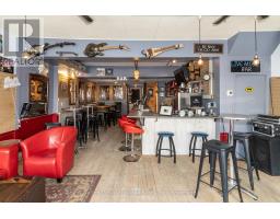What a wonderful opportunity to own a piece of Historical Downtown Huntsville. This Main Street location in Muskoka, offers a great space both inside and outside to accommodate your ideas of what you want to bring to the town. Currently used as a live music venue / bar , the casual sitting atmosphere leads to an awesome patio. So many ways to utilize this open outside area. Current liquor license does cover outside tables at the entry , the main level and the patio. Also features a kitchen to provide some food for your patrons . The upstairs is a great space for the nights you work late with its own bedroom and bathroom . This building is zoned CBD. Please see documents for allowable uses. The Seller is willing to leave almost ALL contents for the next Buyer to start right back up! (id:63952)