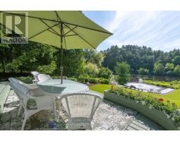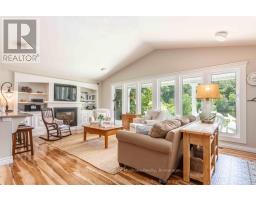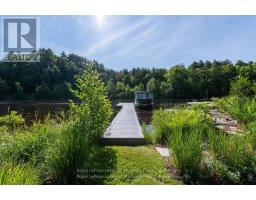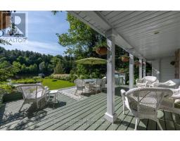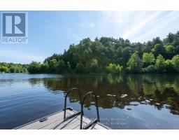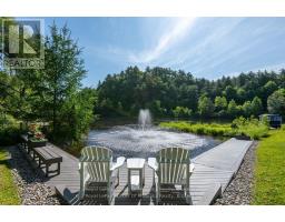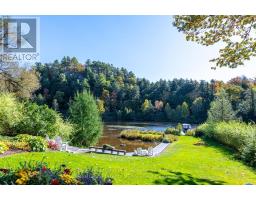 Complete privacy featured on one of the best lots on Muskoka River on one of the quietest in town streetsin Huntsville. The gently sloped thoughtfully and professionally landscaped property offers a private cove with a fabulous fountain and spectacular view of the Lookout mountain and Muskoka forest...you will forgetyou live only a couple of blocks to the vibrant downtown core. The lovely recreational residence is nestledback from the road and is a stand out from the street or the river. Beautiful 4 bedroom home has been abeloved family cottage for many years. The interior features the quintessential open concept primary roomswith vaulted ceilings and window wall overlooking your breathtaking property and riverfront. Living roomwith attractive gas fireplace, kitchen seating at counter, dining suitable for those who like to entertain,main level family or sitting room with views of your porch and gardens. Hardwood floors, front foyer witharched entry, bedrooms with corner windows to maximize natural light, are all thoughtful design featuresof this beautiful home. The 2nd level is an ideal office or kids room. Lower level features another brightbeautiful room currently used as a bedroom but can be a gym, office or whatever you may need. The doublecar garage has a rear door for lawn mower, kayaks, etc. The lot features a private cove with a high endcomposite walkway around it and an idyllic fountain in the middle. The dock is also composite and hasample space for your boat parking. There is a large patio on the riverside for dining and bbqing. Anothergranite sitting area is for thoughtful viewing of the panoramic views that you will want to take in with yourcoffee or glass of wine. The lot, the residence, and the views create a rare package that is difficult to find.This one of a kind opportunity includes some furnishings and could be available for you to enjoy. (id:63952)