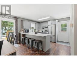 Tucked into the natural beauty of Muskoka, this impeccably kept country bungalow offers the perfect blend of everyday comfort and year-round adventure. Lovingly maintained and thoughtfully updated, the home features a refurbished kitchen with timeless yet on-trend cabinetry, quartz countertops, and a welcoming breakfast bar-perfect for slow mornings or casual entertaining. The dining area walks out to a newly installed, generously sized deck, ready for summer BBQs, evening gatherings, and peaceful morning coffee surrounded by nature.The light-filled living room creates a warm and inviting space to unwind, while engineered hardwood flooring flows seamlessly throughout the main level. Here you'll find three comfortable bedrooms and a well-appointed full bath ideal for families or those looking for easy one-level living. Downstairs, the fully finished lower level offers impressive extra high ceilings and large windows that bring in natural light making it feel anything but below grade. With two additional bedrooms, a full bath, and a spacious rec room anchored by a cozy corner wood stove, it's the perfect setup for guests, extended family, or a blended household. A brand new septic system adds peace of mind, while the location truly shines for those who love the outdoors. Just minutes to Lake Vernon access for a refreshing swim or a quiet cast of the line, and only two minutes to the marina where you can rent a boat slip and explore the sought after four-lake chain. Snowmobile trails are nearby, making winter just as exciting as summer. Whether you're looking for a full-time home or a Muskoka retreat, this property brings together comfort, style, and the lifestyle you've been waiting for. (id:63952)
