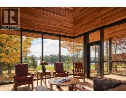 Overlooking the iconic 18th green on Bigwin Island, with spectacular views of Lake of Bays, this rare offering features one of only three award-winning, fully furnished, two-bedroom Club Cabins designed by MacKay-Lyons Sweetapple Architects. Move-in ready for the upcoming season, it also provides the opportunity to obtain membership in the sold-out Bigwin Island Golf Club, giving access to an exclusive 18-hole championship course, practice facilities, clubhouse dining, and member services.Thoughtfully planned with sustainability, natural materials, and low-maintenance living in mind, the cabin offers an open-concept great room, well-appointed kitchen, two bedrooms, and seamless indoor-outdoor spaces oriented to golf and lake views. The property forms part of an intimate nine-unit vacant land condominium with its own private waterfront, one exclusive-use dock slip, and shared conveniences that simplify ownership and enhance lock-and-leave use.Within walking distance of the main clubhouse, driving range, short-game area, tennis facilities, and over 7 km of interior walking and jogging paths, this is a complete lifestyle package on a 520-acre private island with over 26,000 ft of shoreline on Lake of Bays. Ideal for downsizing while remaining on the lake, or as premium guest and recreational space to complement an existing family cottage, this Club Cabin delivers a turnkey way to experience Bigwin Island's architecture, history, and world-class recreation. Price includes the cost of the golf membership, which is valued at $175K and price also included the applicable HST. Membership purchase is subject to the Clubs nomination and Board Approval process. Act now...this will not last long. (id:63952)
