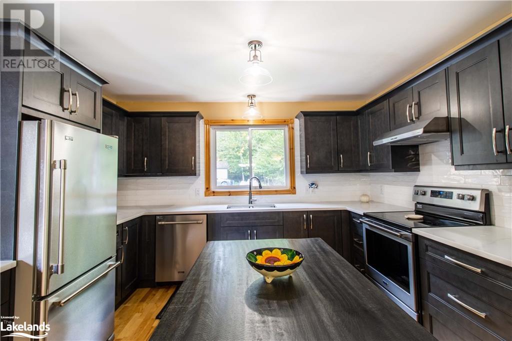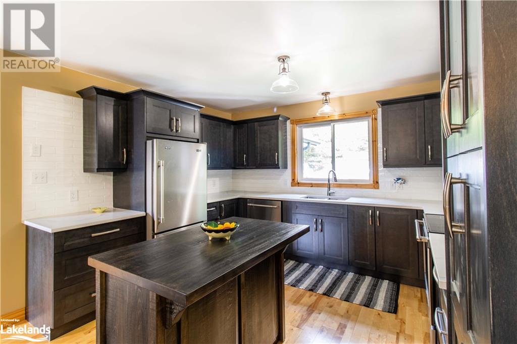Stunning lakefront home or cottage. This beautiful home was built in 2005 on the shores of prestigious Soyers Lake, which enjoys access to Haliburton's most sought-after 5-lake chain with over 28 miles of boating including right into Haliburton Village. As you enter the home you are greeted with open-concept principal rooms with views over the lakeside. The kitchen was redone in the fall of 2022 with new countertops, stained wood cupboards, tile backsplash, & more. The dining area is perfectly set up for entertaining with a walkout to the covered deck for dining al fresco while enjoying the views over the well-maintained property & lake. The great room enjoys soaring cathedral ceilings & a wall of windows to take advantage of the views & bringing the outside in. The wood stove makes the space cozy & welcoming, perfect for gathering around on cool evenings. This home is ideally set up for main-floor living with the primary suite situated steps away from the principal rooms. The spacious bedroom has a walkout to a private balcony, ample closet space, & a 5-PC ensuite bath. The 2nd bedroom is also on the main floor, perfect for your guests or family. Finishing off the main level is a recently updated 4-PC bath & a main floor laundry room/mud room. The upper level features a 3rd loft-style bedroom overlooking the great room. The lower level has been partially finished with a spacious rec room, perfect for your kids or movie nights on rainy days. The remainder of this level is ready to finish to your taste & it is currently used as a storage area/workshop. Outside you'll find the property is beautifully maintained with gardens throughout & a good-sized shed recently re-finished into a sitting area. A gentle slope from the yard brings you to the water's edge, with 149' of frontage, clean sand waterfront, deep water off the end of the dock, & sunny southern views over the lake. Just 10 Mins to Minden or Haliburton & 2.5 hours to the GTA. Book your private tour today! (id:37775) |