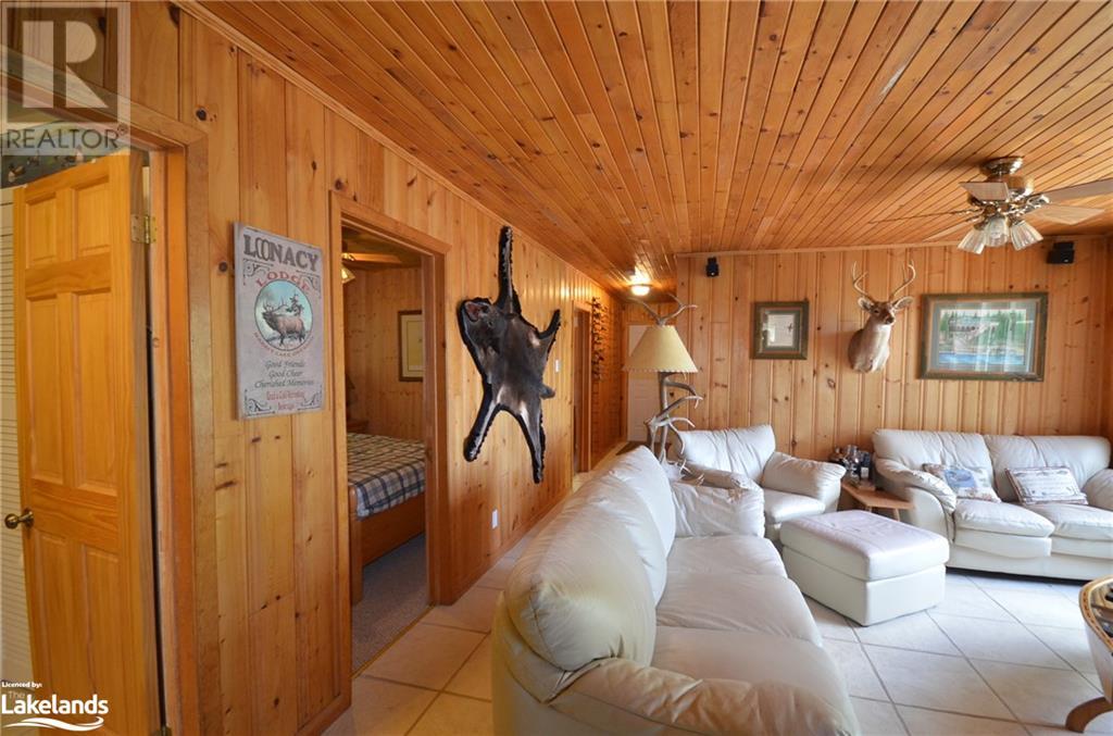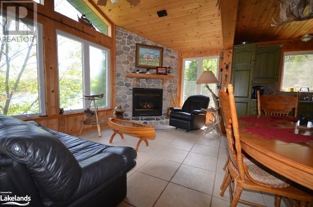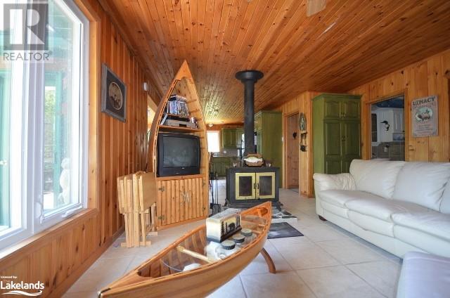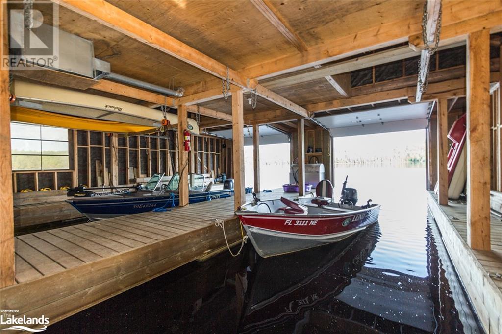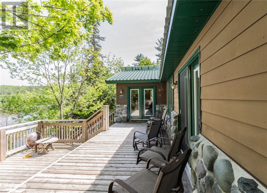 This true north stunning cottage in Teachers Bay/Rabbit Lake will make you realize there is more to life then hustle and bustle. Under a 10 minute boat ride from protected dock at landing location where you park your car and head for the cottage! Fully winterized 1400 plus square foot main cottage with minimal maintenance for your relaxing pleasure. Steel roof, new solar panels, hardiboard and rock exterior. Boasting 3 generous bedrooms, full bath, main living room with propane fireplace, family room with wood burning stove, large gorgeous kitchen. Enjoy your morning coffee or watch the sun go down on the multilevel deck. The boathouse suite is a cottage on its own really with 800 sq ft...full kitchen, full bath, living room with propane log set fireplace and bedroom. Fully winterized as well and with full privacy deck overlooking the water. Keep your boats and watersport equipment out of the weather in the multiple slip boathouse. Special Features of this remarkable property include dual water filtration system Trojan UV Max, in-wall cell, automated solar/electrical system with auto programmed propane back up generator, satellite T.V. Carlisle antique plank flooring, granite counters, 3+acres of property backing onto crown land and waterfront lot under dock and boathouse is owned. Truly a remarkable place. (id:37775)