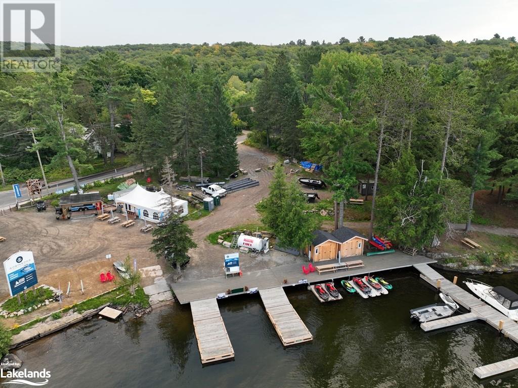 A world class destination on Lake of Bays! This rare offering on beautiful Lake of Bays in downtown Dorset is an extensive collection of land and buildings with western exposure, a central location, and 470 feet of clean, deep, rocky outcrops on Trading Bay in the District of Muskoka, Ontario. Primary building (30x32) located on Main Street is a well-appointed retail space that includes a security system, air-conditioned office, new water system, new 200-amp service, that is insulated with electric baseboards, and a brand-new asphalt shingle roof (2021). Some newer docks and premium dock system with the potential of 30 boat slips. The main dock is massive at over 100 feet long, and all docks are constructed of metal framing and metal piles for stability, longevity, and peace-of-mind. New, above ground premium fuel pump (2021) and two newly built multi-purpose sheds that are currently used as a retail space for the marina but can be easily repurposed. Additional features… An original cabin structure exists on the waters edge with west exposure (original building belonged to a heritage resort). Property has been approved by the Lake of Bays Township for boat house construction close to the area of the original cabin. The existing boat launch is centrally located on the dry, flat lot, and the property includes ample space for creativity and design! Create a destination for locals and visitors alike in this much loved, tourism area on Lake of Bays. (id:37775)