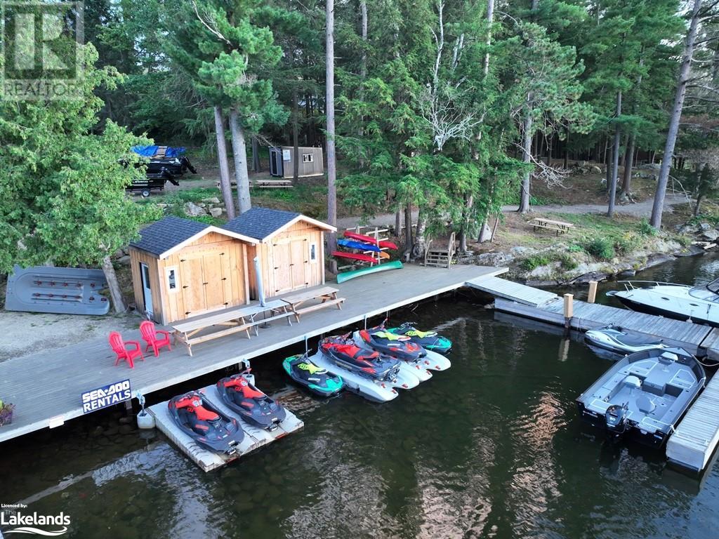 A world class destination on Lake of Bays! This rare offering on beautiful Lake of Bays in downtown Dorset is an extensive collection of land and buildings with western exposure, a central location, and 470 feet of clean, deep, rocky outcrops on Trading Bay in the District of Muskoka, Ontario. Primary building (30x32) located on Main Street is a well-appointed retail space that includes a security system, air-conditioned office, new water system, new 200-amp service, that is insulated with electric baseboards, and a brand-new asphalt shingle roof (2021). Some newer docks and premium dock system with the potential of 30 boat slips. The main dock is massive at over 100 feet long, and all docks are constructed of metal framing and metal piles for stability, longevity, and peace-of-mind. New, above ground premium fuel pump (2021) and two newly built multi-purpose sheds that are currently used as a retail space for the marina but can be easily repurposed. Additional features… An original cabin structure exists on the waters edge with west exposure (original building belonged to a heritage resort). Property has been approved by the Lake of Bays Township for boat house construction close to the area of the original cabin. The existing boat launch is centrally located on the dry, flat lot, and the property includes ample space for creativity and design! Create a destination for locals and visitors alike in this much loved, tourism area on Lake of Bays. (id:37775)