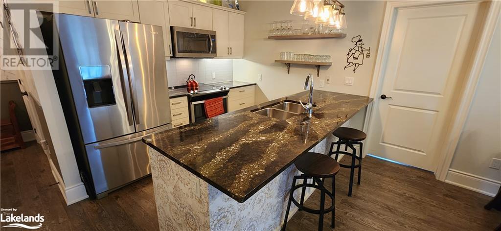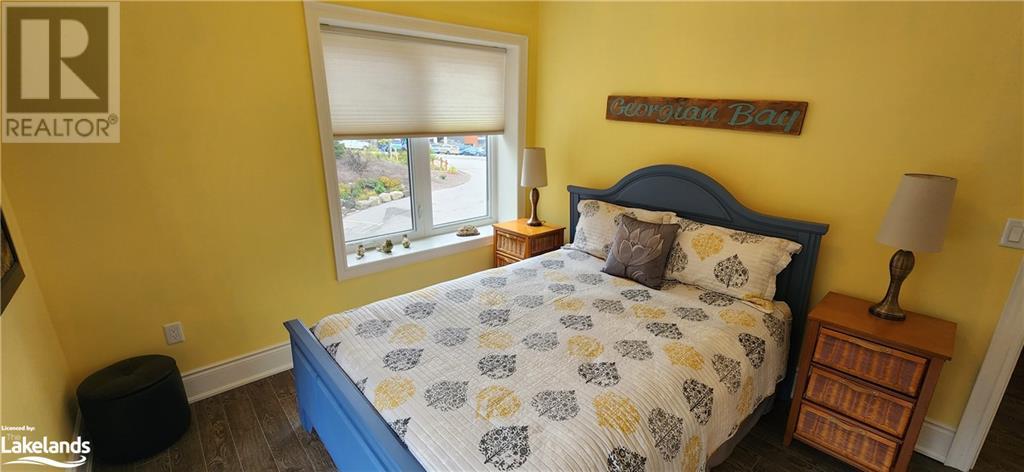 This 2 bedroom, 2 bath, open concept condominium is a rare offering. Not offer do these units become available for sale. Overlooking beautiful Georgian Bay. Situated close to numerous walking trails, public beaches, restaurants, boat launch, sailing club and performing arts centre. Features include radiant in-floor heating, air conditioning, underground parking and storage, elevator, large balcony with southwest water views, upgraded kitchen, quartz countertops, media room with surround sound, in-suite full size laundry, air exchanger, insulated concrete form construction and so much more! Come have a look! (id:37775)