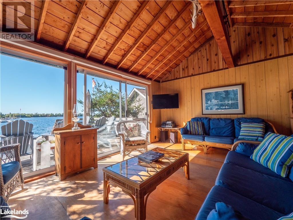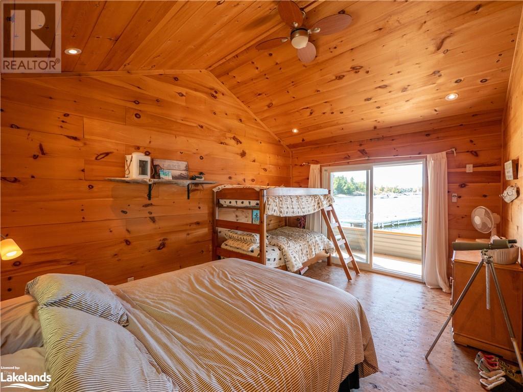 Enjoy Georgian Bay’s spectacular sunsets from this Westerly facing cottage. With plenty of room for the whole family and friends, this cottage offers 3 bedrooms, 2 bathrooms & bunkie. The newer building just off the water’s edge has two decks for added space to spread out with family and friends. Set in front of a forest of mature trees the open concept main cottage with wood burning fireplace allows plenty of room for meal prep and entertaining. Two large sliding glass doors allow for panoramic views of the water. The newly built shore deck & ramp attaches to an “L” shaped floating dock which allows ample boat dockage. Wade in or go off dock into deep clear water, great to cool off on hot summer days. Only a 10-15 min comfortable boat ride from Honey Harbour, your relaxation destination awaits. (id:37775)