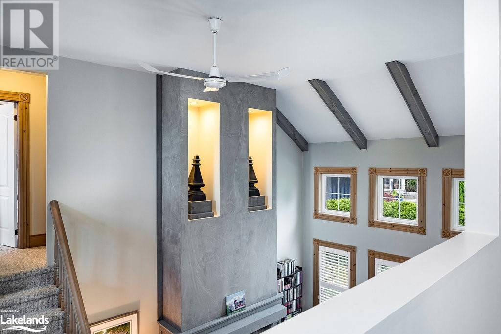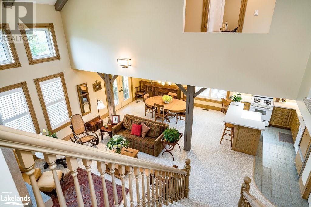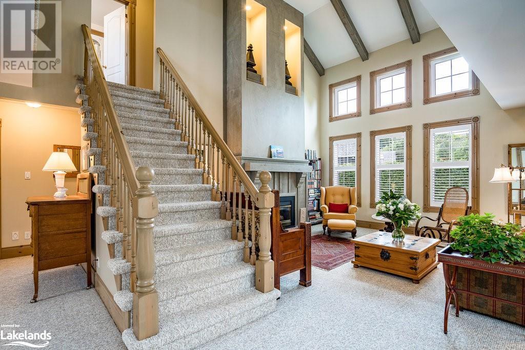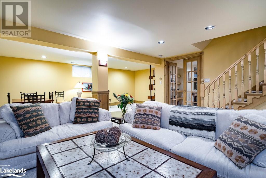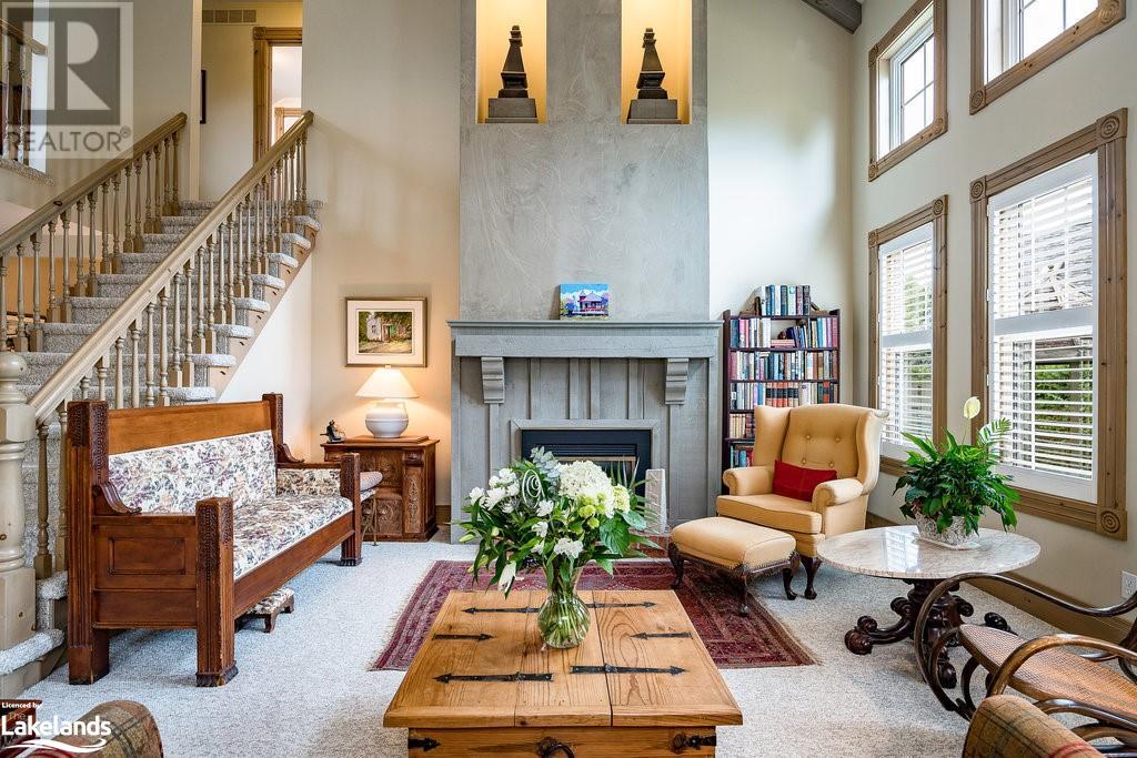 Nestled in its own green paradise, the immaculately maintained Rainmaker quality custom-built residence features 3,234 sq. ft. of living space and accommodation is plentiful with 5 bedrooms, 3.5 bathrooms, an office, loft and finished basement for the children’s activities. An Open Floor Plan with soaring two-storey ceiling in the Great Room with beam accents and floor to ceiling gas fireplace, Dining Room and Kitchen with Pantry and 2 pc powder room, provide great day to day living and entertaining space for friends and family. The Primary Bedroom with 5 pc ensuite and laundry on the main level make single level living possible for owners and afford plenty of privacy when hosting family and guests on either the lower level or the 2nd floor. An attached 3 Season Sunroom with sun awning from the Dining Room and outdoor gazebo add to the outdoor entertaining space and room in the back yard for kids and pets. Enjoy coffee on your front porch and morning sunrises. Upstairs are 3 bedrooms, a 4pc Bathroom and a cozy Loft for reading and watching tv. The basement features a family room with gas fireplace, an office and another bedroom. The 2 car garage with inside entry to the home features plenty of parking for 6 cars on the property. This idyllic location between the ski hills and Georgian Bay provides easy access to the private ski clubs of Craigleith, Alpine and Georgian Peaks. Blue Mountain Village restaurants, shops, skiing and golf is minutes away. Hike through the trails at Georgian Woodlands and Nipissing Ridge with excellent access to the Georgian Trail across the street. You are only a 5 minute walk away from Georgian Bay and Northwinds Beach for watersports like kayaking, swimming and paddle boarding. Dock your boat at the local marinas in Collingwood, Thornbury or Meaford. This is a very special property that will create a lifetime of memories for generations to come. An enviable proposition situated in a highly sought after prime neighborhood. (id:37775)