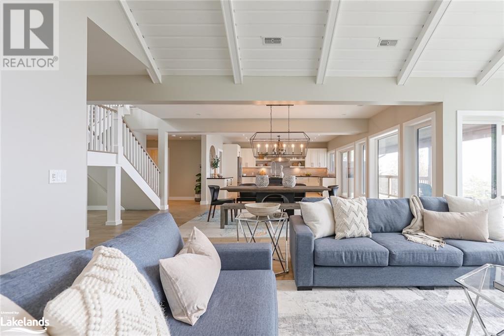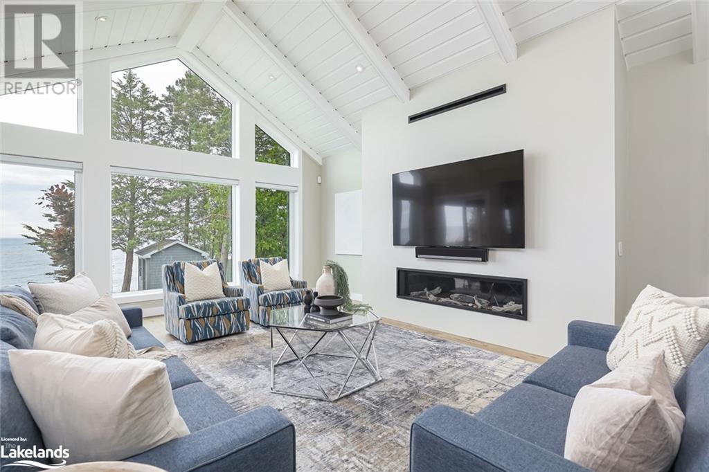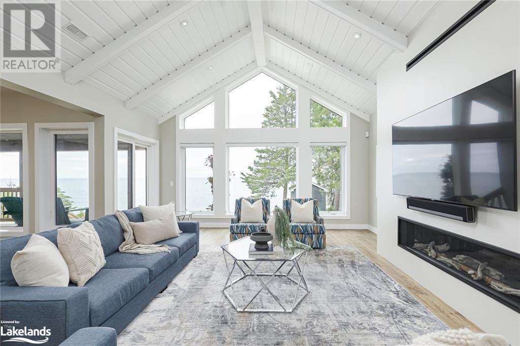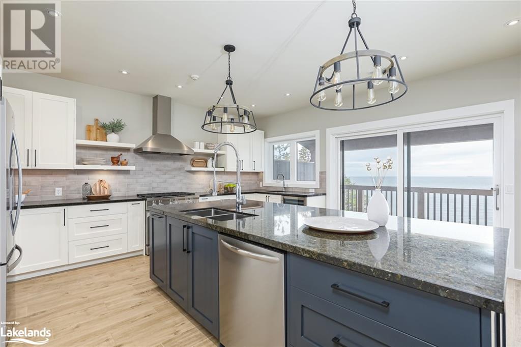 Luxury, Waterfront with SANDY BEACH, custom-built, retreat located on Georgian Bay. This brand new (2020) Blake Farrow Custom Built Home is constructed with attention to detail throughout with a 60.56 ft of stunning Sandy Georgian Bay waterfront. It is set back in and amongst towering trees, providing lovely landscaping as well as privacy, located minutes from Thornbury. Only a few cottages are on the laneway with The Peasemarsh Conservation area surrounding it. 3,260 sq ft, 5 bedroom, 3 full bath stunning dream home has so many upgrades and features it's nearly impossible to list them all! Make your way inside to find direct water views with the large windows letting light pour into the open concept space. The main floor offers a large foyer, main floor bedroom/office, open concept bright great room, dining room, and kitchen, with a wall of windows overlooking the Bay. The tile floors are heated through the main floor. It's an entertainer's dream with a spacious chef's kitchen that has an oversized granite island with a breakfast bar, an oversized pantry, ample cabinetry, and a gas stove with 6 burners. 4 bedrooms on the 2nd floor with a stunning wall-to-wall lake view from the primary Bedroom, and a guestroom facing the water too. The back bedrooms are very spacious and offer kids/guests an entertainment tv area. This view can be yours forever! Imagine admiring the panoramic views and sunrises from the large deck while your family enjoys all that Georgian Bay has to offer – swimming, boating, surfing, and paddleboarding... And in winter, you are minutes to ski resorts and hiking trails while still enjoying spectacular, expansive views of the Bay, while enjoying the gas fireplace. Municipal water, septic, and detached double garage. The perfect family retreat is being sold turnkey (furnished), close to Downtown Thornbury and a short drive from the Georgian Bay Club, Craigleith Ski Club, and Blue Mountain Village. (id:37775) |