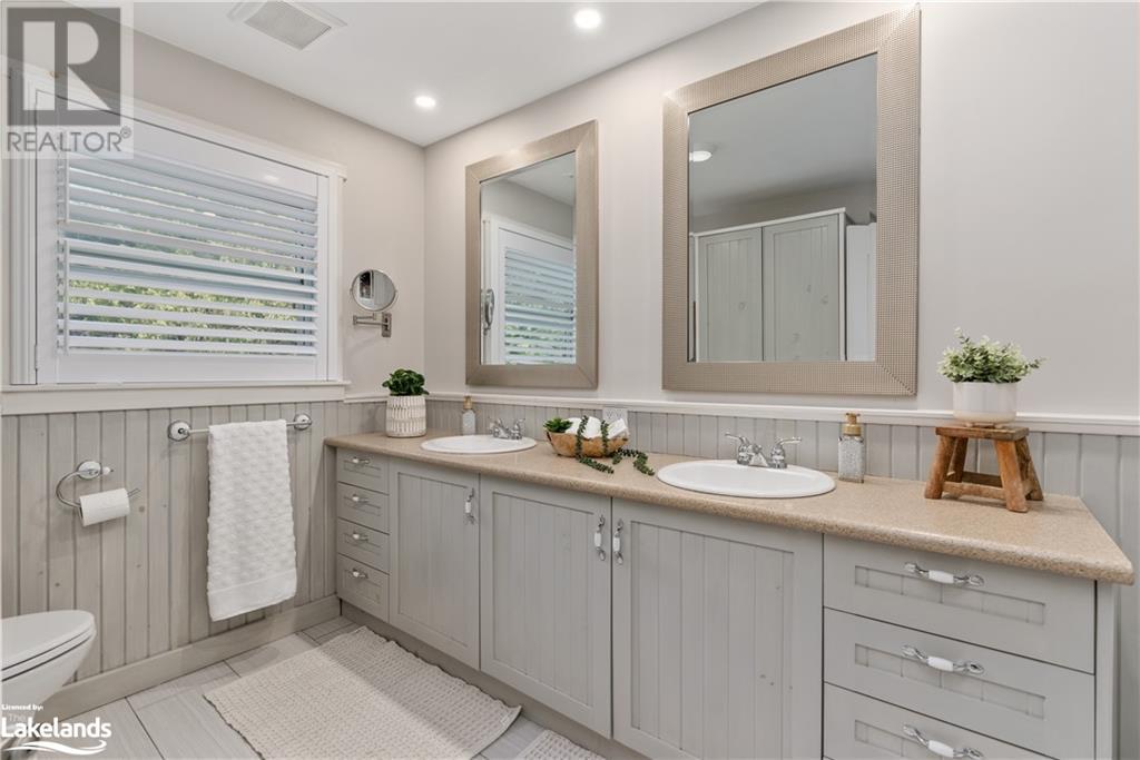 This home is the ultimate hybrid. 211 Hunters Bay Drive is 100% redone, TURNKEY, and completely maintenance free. Part lakeside retreat with mature trees and professional gardens and part family home on a desired street in beautiful downtown Huntsville. If you want it all, this extended ranch 211 Hunters Bay Drive delivers in all the ways that matter. This updated maintenance free home allows you to enjoy the freedom of lakeside living. The 3 bedrooms, 1 extra room, and 2-bathroom home exudes comfort. The downstairs bath features heated floors, and a steam shower for returning from those early morning swims (just toss that wetsuit in the all-new washer dryer.)This home was purchased for its desirable in town location (with municipal water, gas, and sewer) and has been totally renovated to exacting standards. It is being sold turnkey and includes all furnishings and window treatments. There is absolutely nothing that needs to be done here: simply move in and enjoy. The stunning kitchen looks out onto Hunters Bay on Lake Vernon with views of Avery Beach and the welcoming Hunters Bay Walking Trail. This thoughtfully restored space with all new appliances, double stove, shiplapped ceilings, and Corian countertops looks onto a stunning living area with a look-through fireplace and speaks to the attention to detail and solace which are the central themes here. The upper deck is completely new and creates a lower-level oasis complete with a hot tub and clever outdoor lighting. The furnace and roof are new and contribute to the hassle-free lifestyle. There’s ample parking for entertaining and owners are just minutes away from schools, healthcare, and places of worship. The look and feel of 211 Hunters Bay Drive fits in with its community but the property has undergone such extensive upgrades that you are essentially moving into an all-new space. This is what everyone wants. This is the best of both worlds. This property is minimally staged, those items aren’t included. (id:37775) Please visit : Multimedia link for more photos and information |