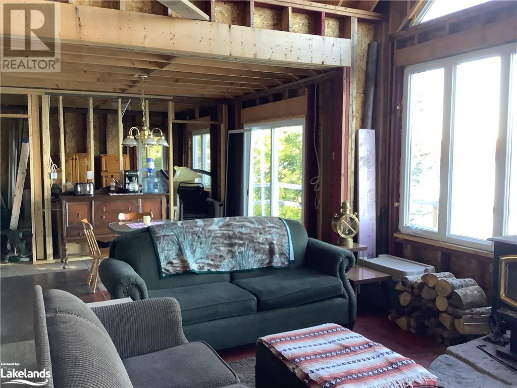 Don't miss this fantastic opportunity to get into cottage life. This water-access cottage is situated on Wilson (wauquimakog) Lake, part of the well known Pickerel River System offering access to 60 kms of boating, fishing and overall enjoyment. The cottage has an unfinished, open-concept layout with 2 bedrooms, kitchen/dining, living room and bathroom. Enjoy the abundance of natural lighting from the large windows and the coziness of the wood stove in the living room on cool evenings. The sliding doors in the dining area lead to a large deck overlooking water and the surrounding area. The views are absolutely stunning! The electrical and plumbing work is in progress. The unfinished rooms offer great potential to finish this dwelling the way you would like it. Enjoy the convenience of a fully insulated bunkie located on site and an outhouse equipped with a composting toilet. The property has hydro, composting toilet, cell service, telephone available. Crib is in place for a dock. Approximately 5 minute boat ride from Wilson Lake public boat launch. For hunters, this location is a popular spot for deer, moose, and many other types of wildlife, WMU47. For the snowmobiling enthusiasts, some of Ontario’s finest OFSC trails are in close proximity in Argyle Rider Snowmobile Club territory. Don’t forget to ask us about the details and advantages of owning in an Unorganized Township. (id:37775)